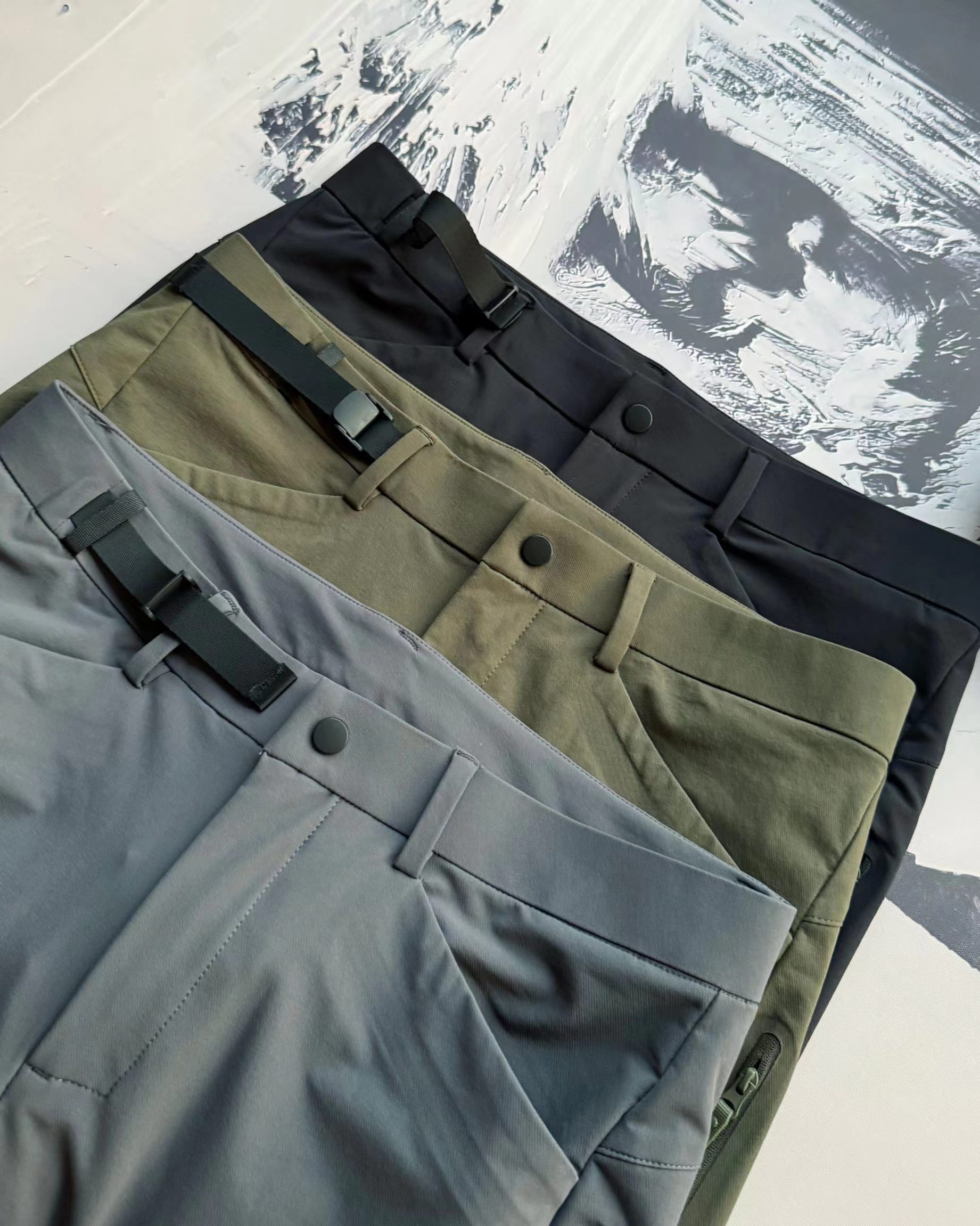 常舒适的Schoeller软壳面料算得上是旗舰级软壳面料,很多奢侈品牌都在使用;持久防泼水处理,增强裤子的耐候性和抗污性,防水剂完全使用可再生原料,不含PFC氟化物等对人体和环境有害的成分;3D剪裁 腿部倾斜拼接,预成型膝盖,裆下嵌片等设计,适合攀岩徒步等各类高山运动使用左右两侧魔术贴外置调节腰带,连续可调长度,方便而且耐用; -膝盖、小腿和臀部部分使用补强耐磨面料,贴合岩石耐刮耐磨同时提高摩擦力;-两个插手口袋倾斜开口配有拉链,即使带着攀岩背带也能方便使用,大腿两侧位置有带拉链的地图口袋;-半弹性裤脚+对称裤脚设计适合登山靴和攀岩鞋,内置金属挂钩。