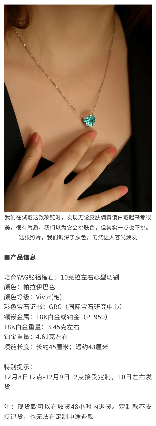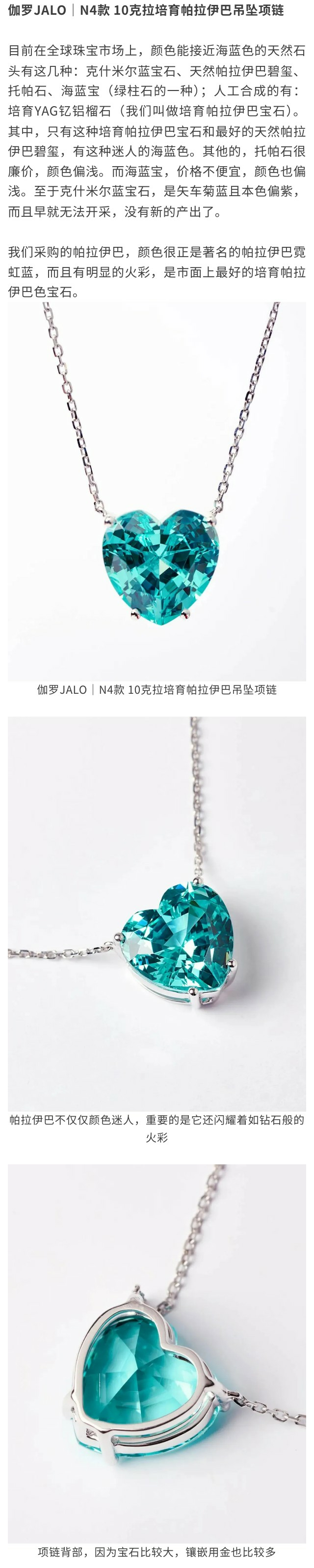 伽罗JALO N4款 培育帕拉伊巴色宝石铂金吊坠项链