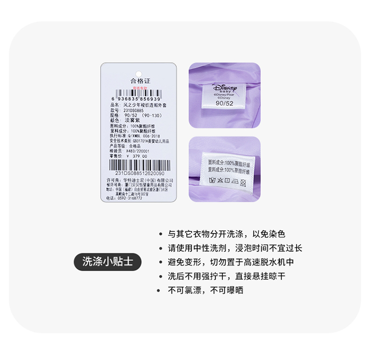 【商城同款】迪士尼童装儿童外套可爱黛丝女童连帽外套231DS0885
