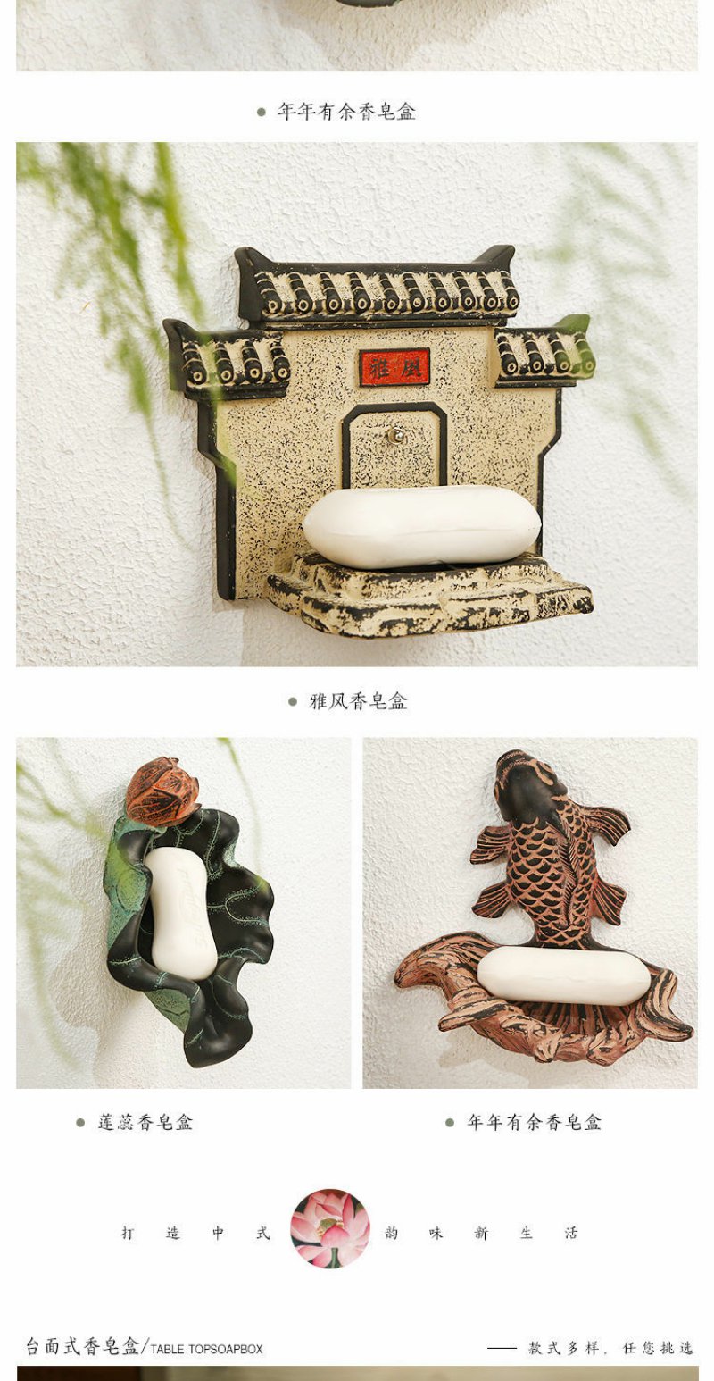 免钉壁挂式香皂盒仿古创意沥水皂盒置物架中式卫生间浴室肥皂碟