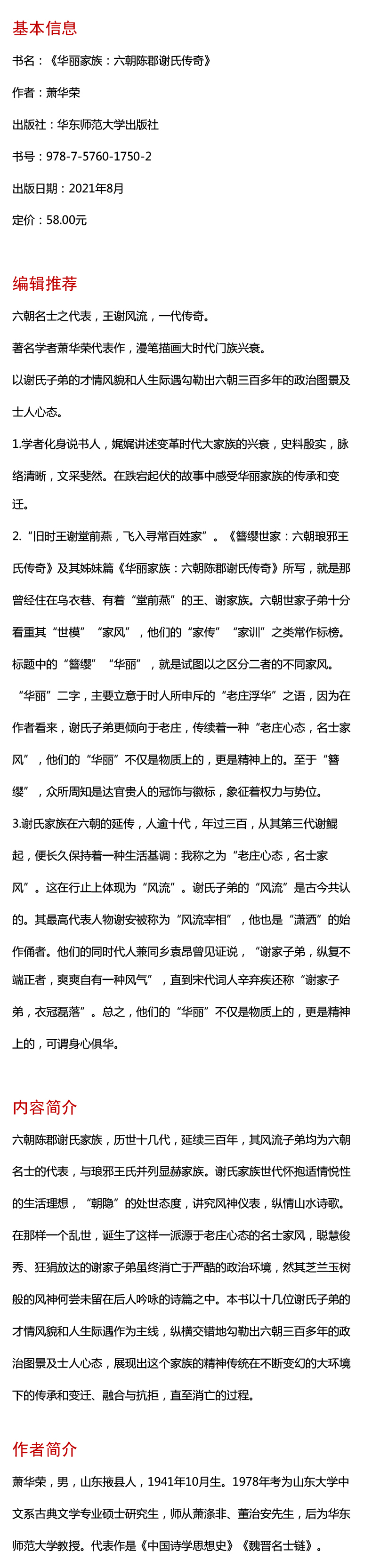六朝名士传奇系列2册 华丽家族+簪缨世家 知名学者萧华荣代表作 王谢风流 一代传奇