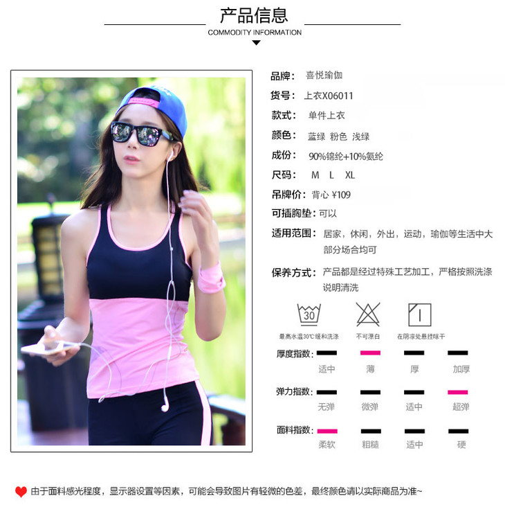 xiyueyoga-依琦莲旗下品牌 春夏新款运动跑步健身背心韩版时尚拼接瑜伽服上衣女紧身显瘦单件上衣X06011