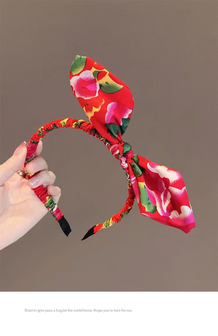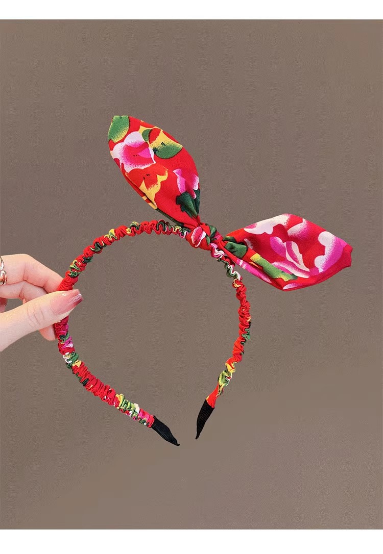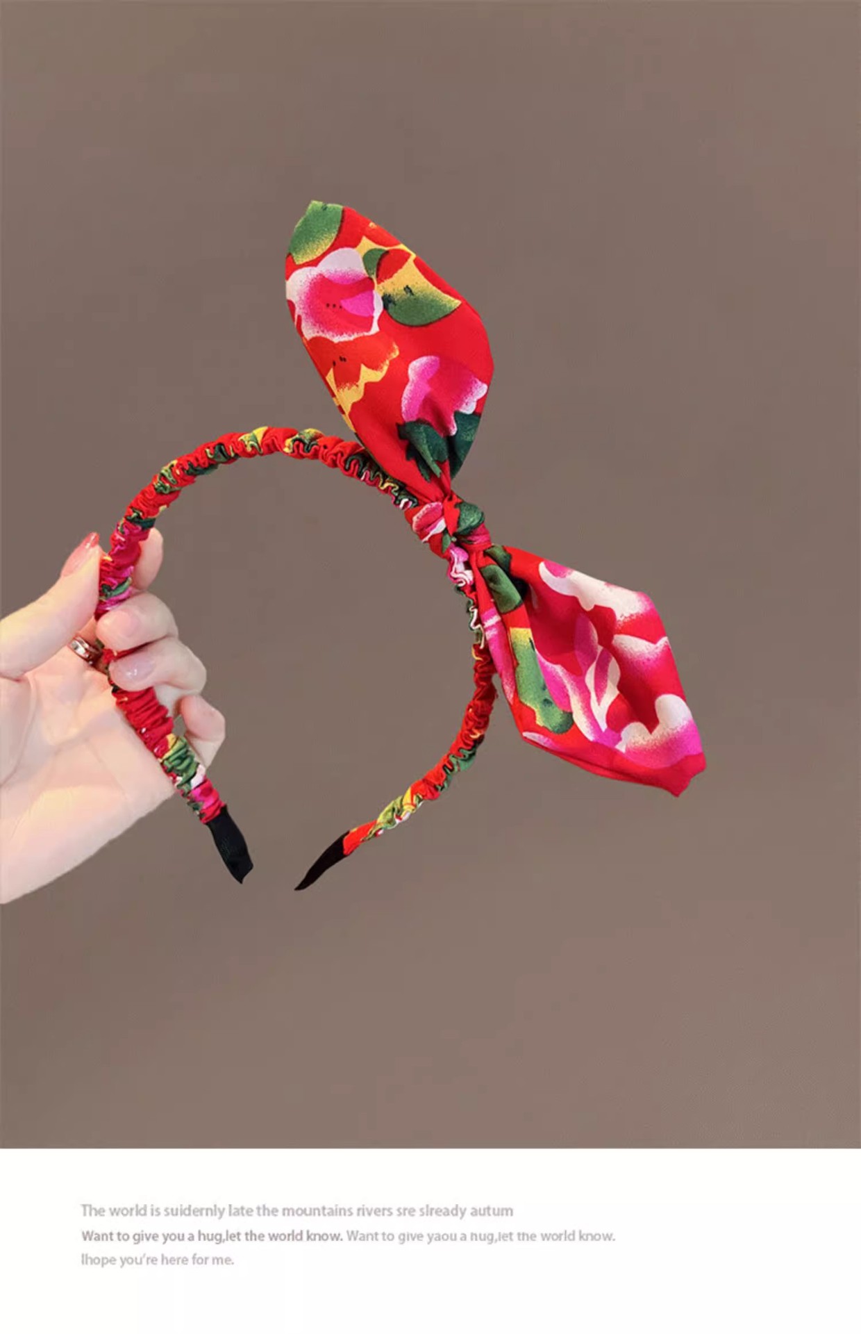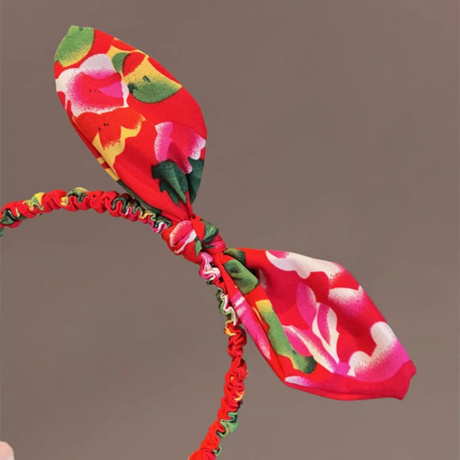 网红新中式东北大花国潮蝴蝶结发箍个性搞笑发饰新年2025大红喜庆