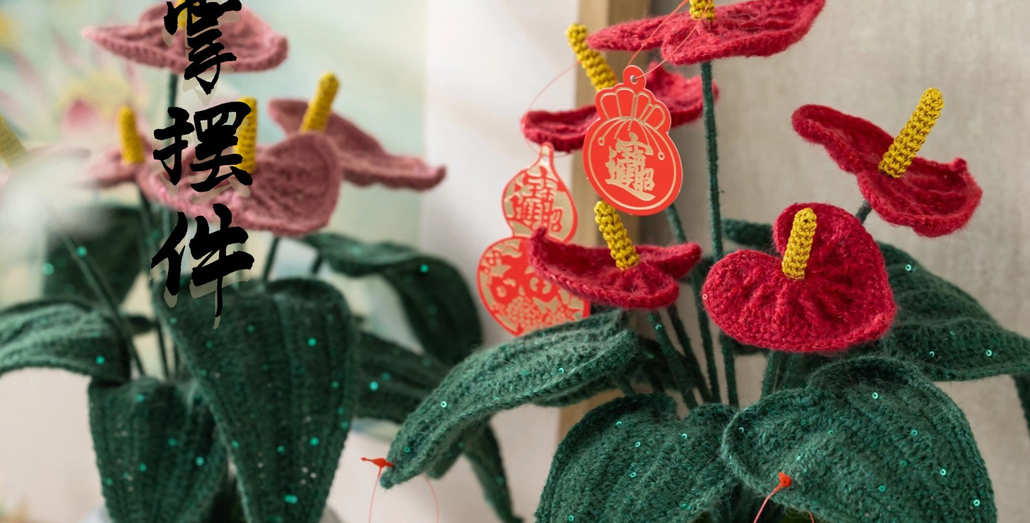 苏苏姐家鸿运当头红掌摆件手工钩针编织材料包毛线diy礼物