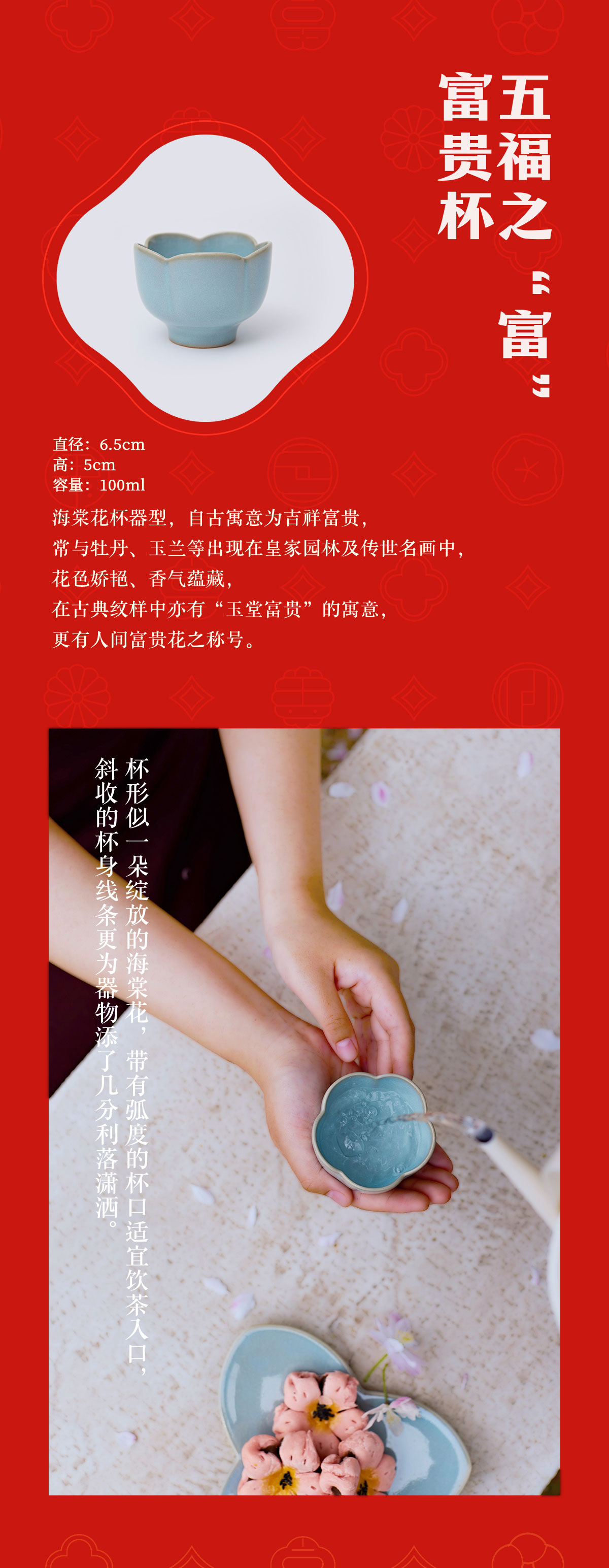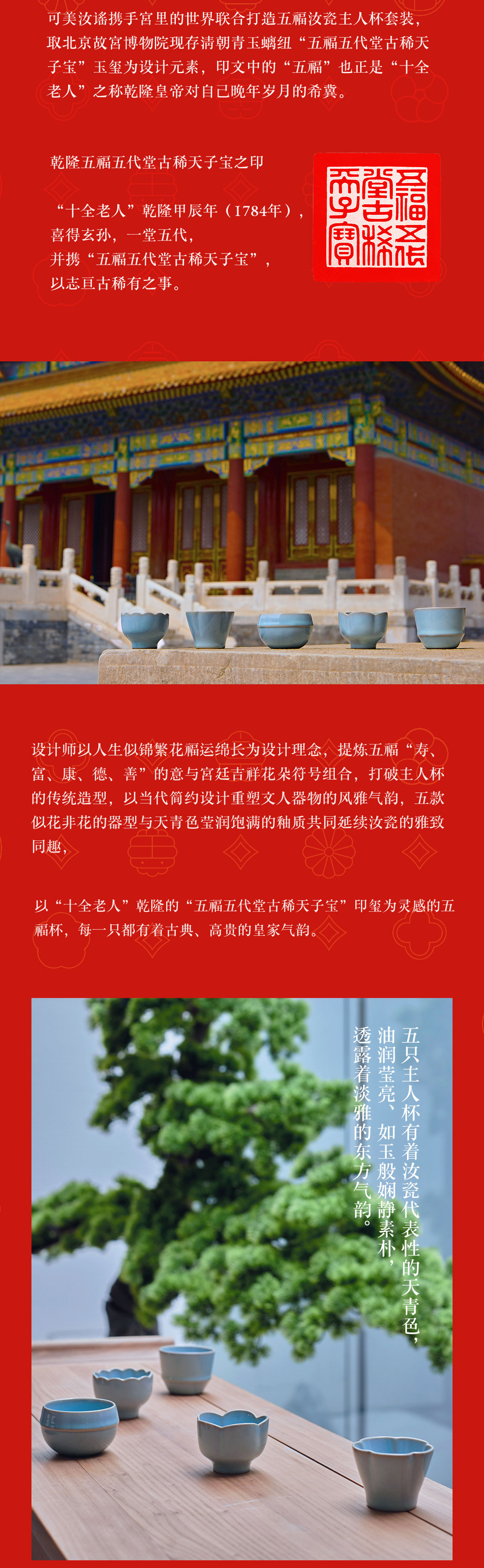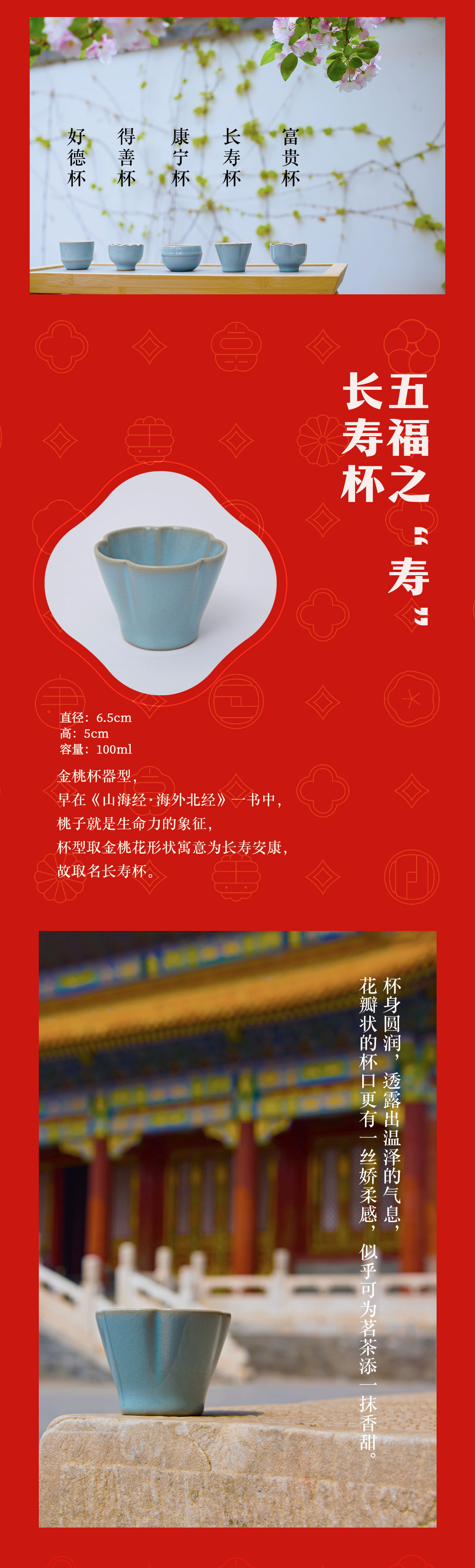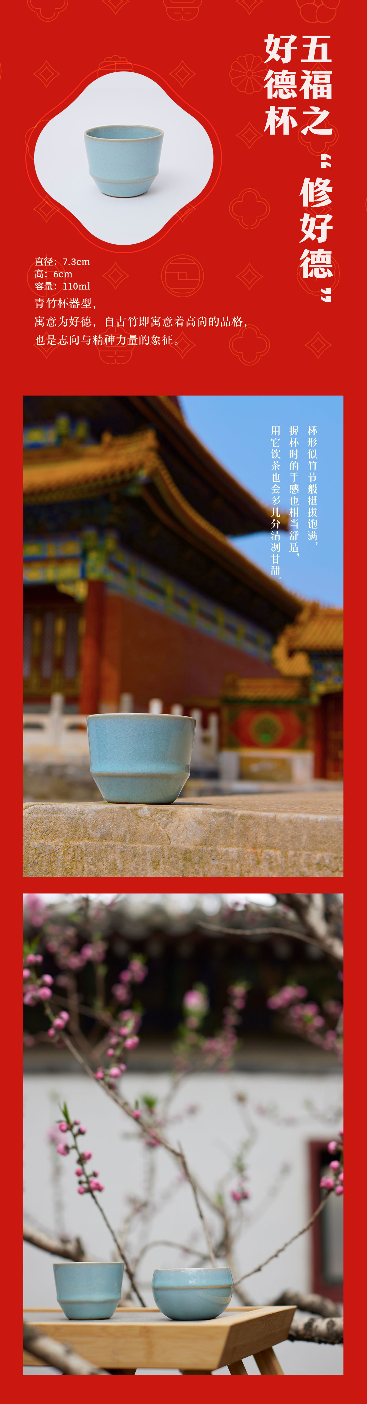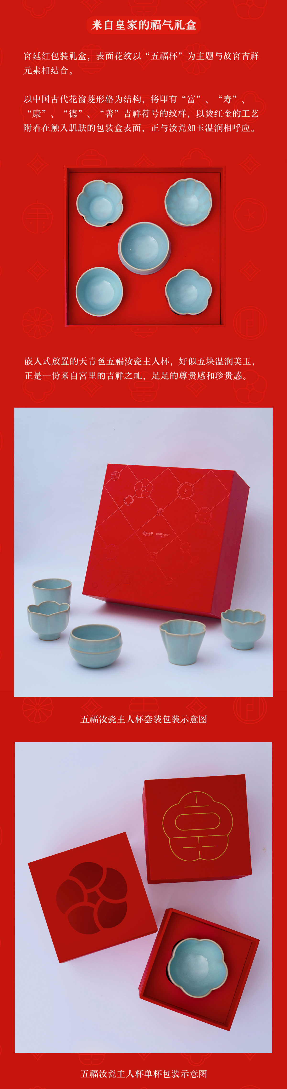 【采购专享】宫里的世界&可美汝谣 五福汝瓷主人杯 礼盒装