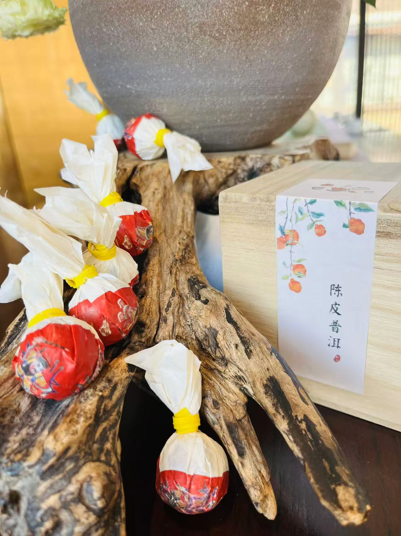 普洱茶性温和。吸取了陈皮的香甜,陈皮也接受了普洱茶的厚重,相互吸取味道精华,相互增益。
