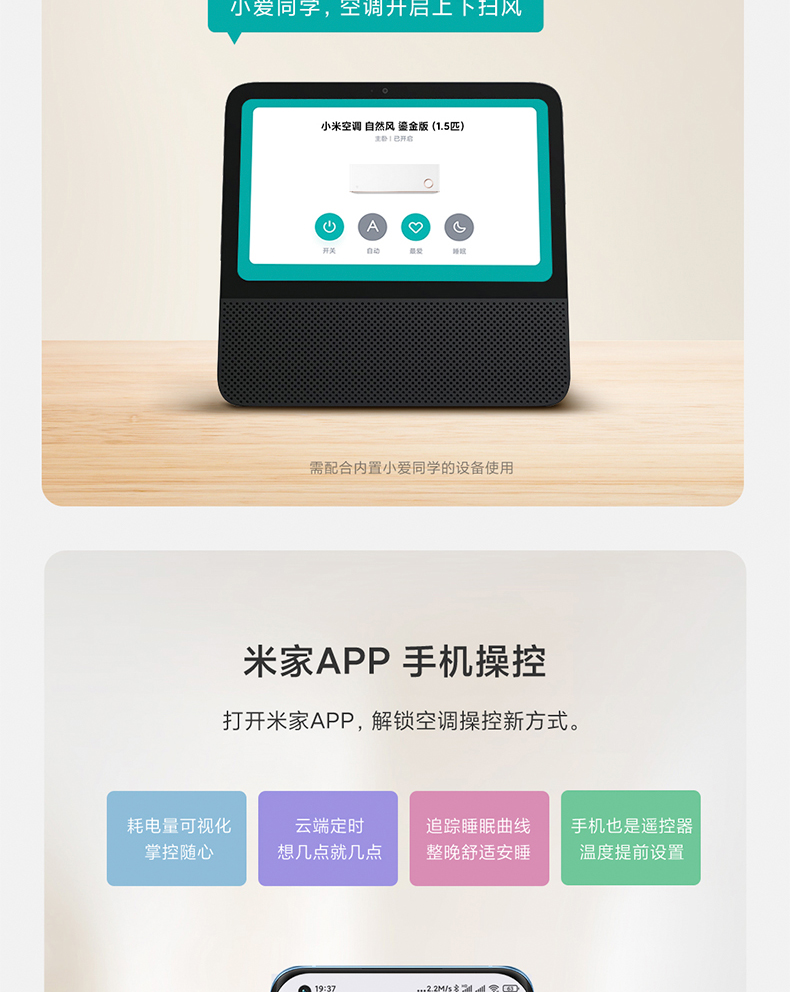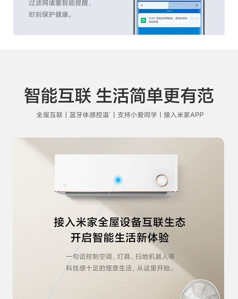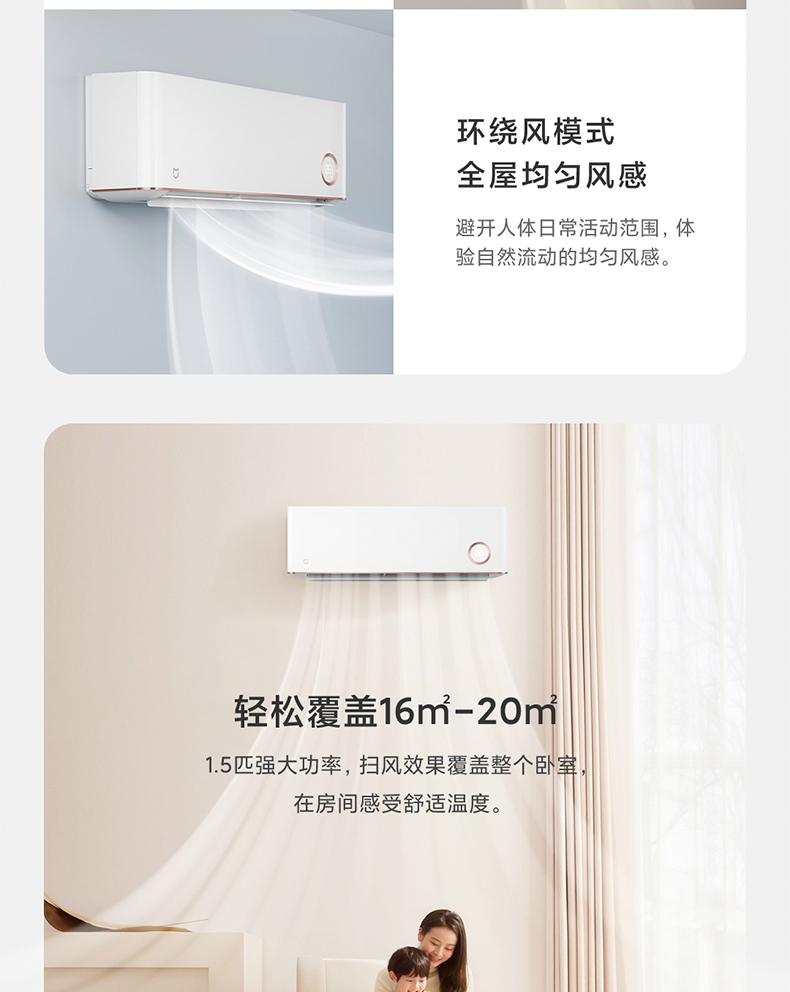 【小米热销】小米(MI)米家空调鎏金版1.5匹新一级能效语音控制巨省电变频冷暖智能清洁自然风壁挂卧室挂机KFR-35GW/D1A1