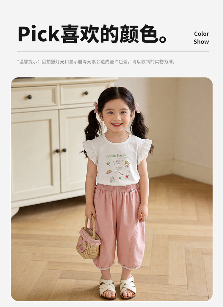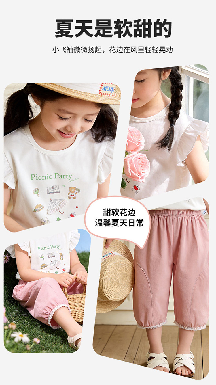 贝贝怡【软糯牛仔喇叭裤】24秋新款女童花边修身中大童微喇百搭长裤ZB3DK077
