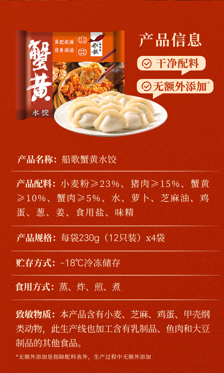 船歌鱼水饺蟹黄水饺礼盒230克*4袋