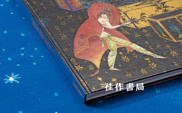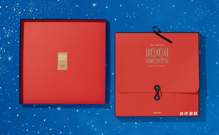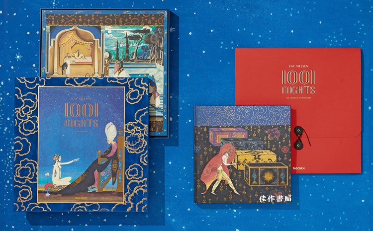 2018年,Taschen推出了超大开本精装原版艺术书籍《一千零一夜》。这本色彩绚丽、有浓厚装饰风格的插图书,出自丹麦艺术家尼尔森(Kay Rasmus Nielsen,1886-1957)的手笔,他在《一千零一夜》中汲取了波斯、 印度、 中国绘画中的长处, 大量使用波斯细密画的风格和色彩。