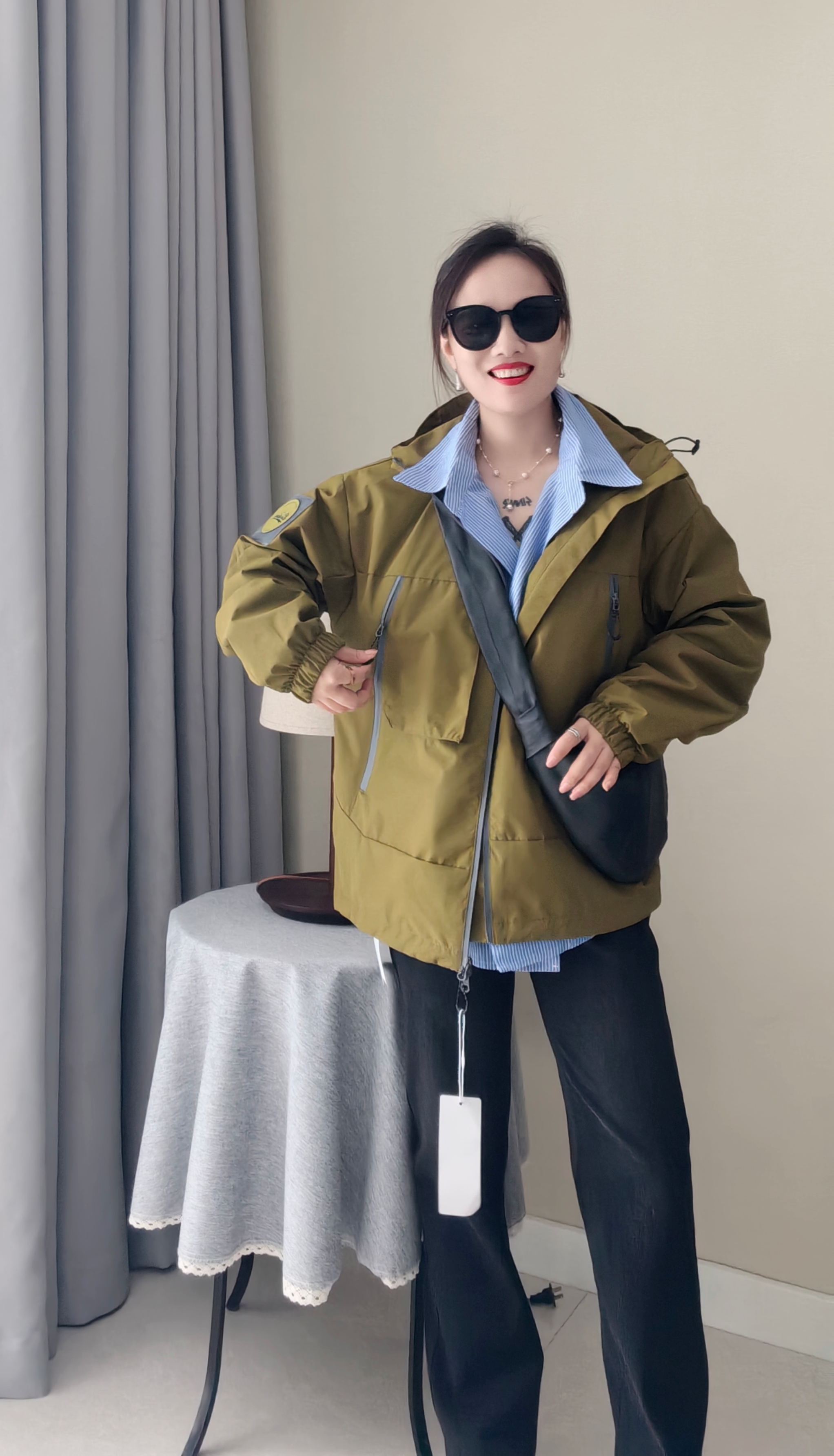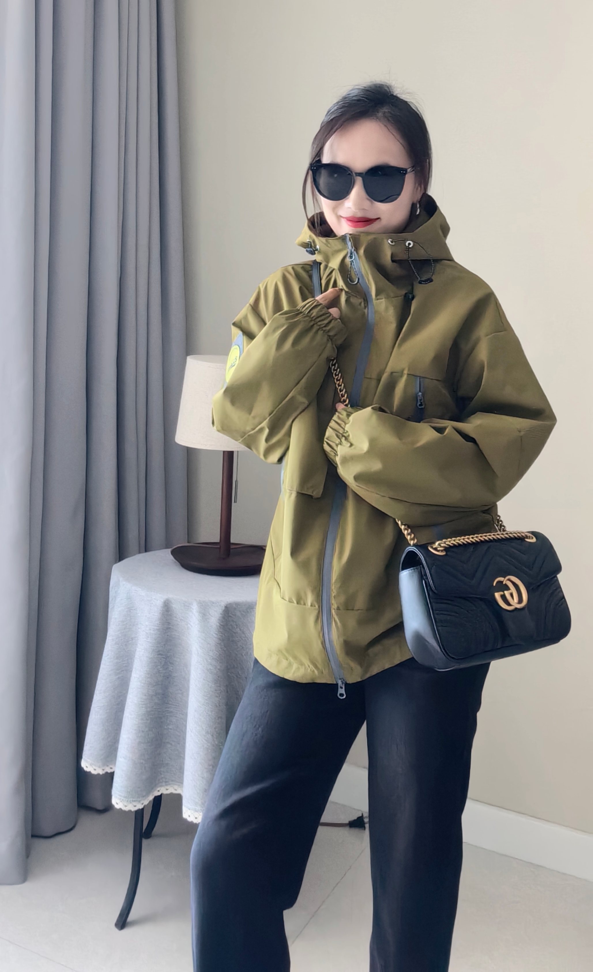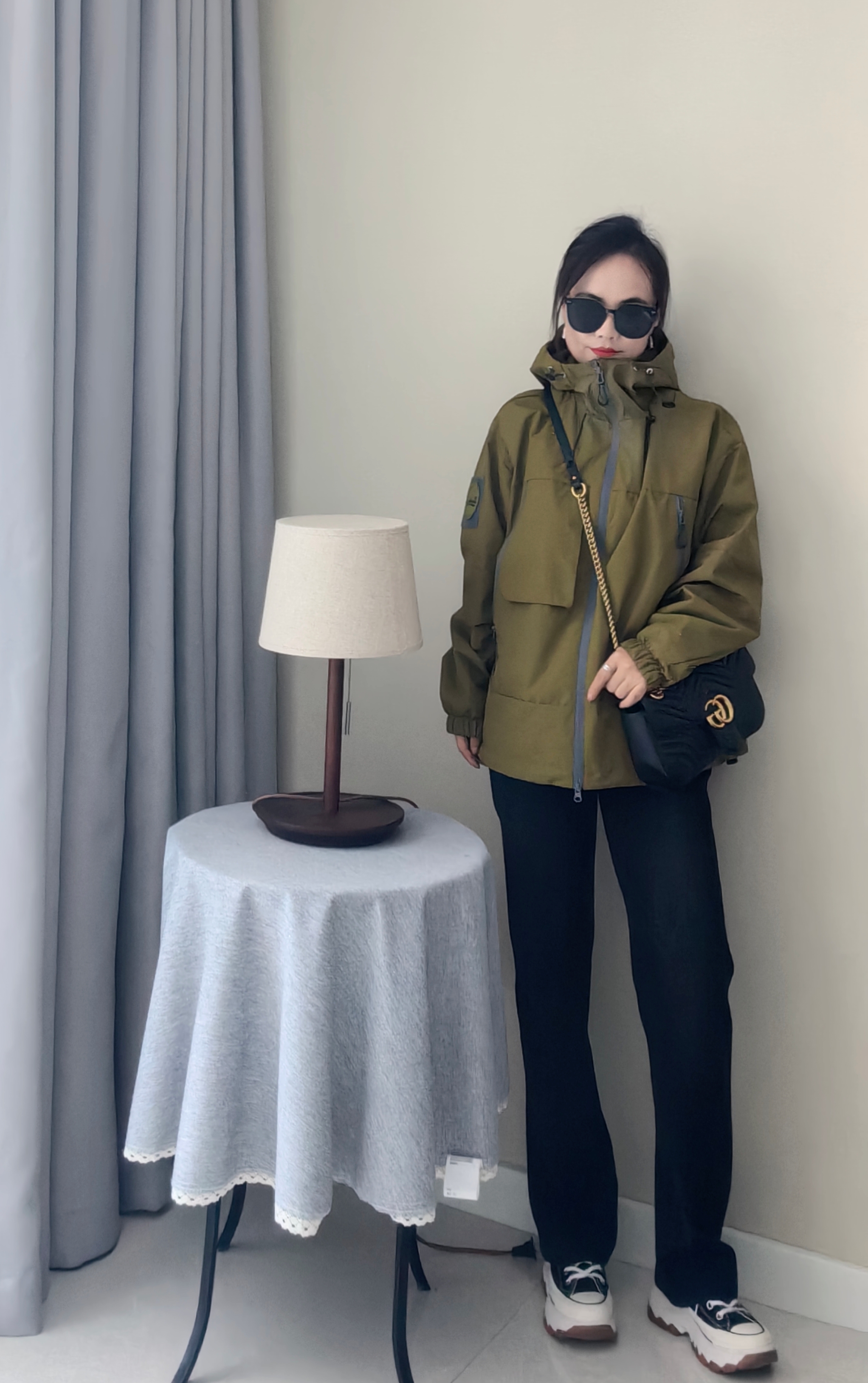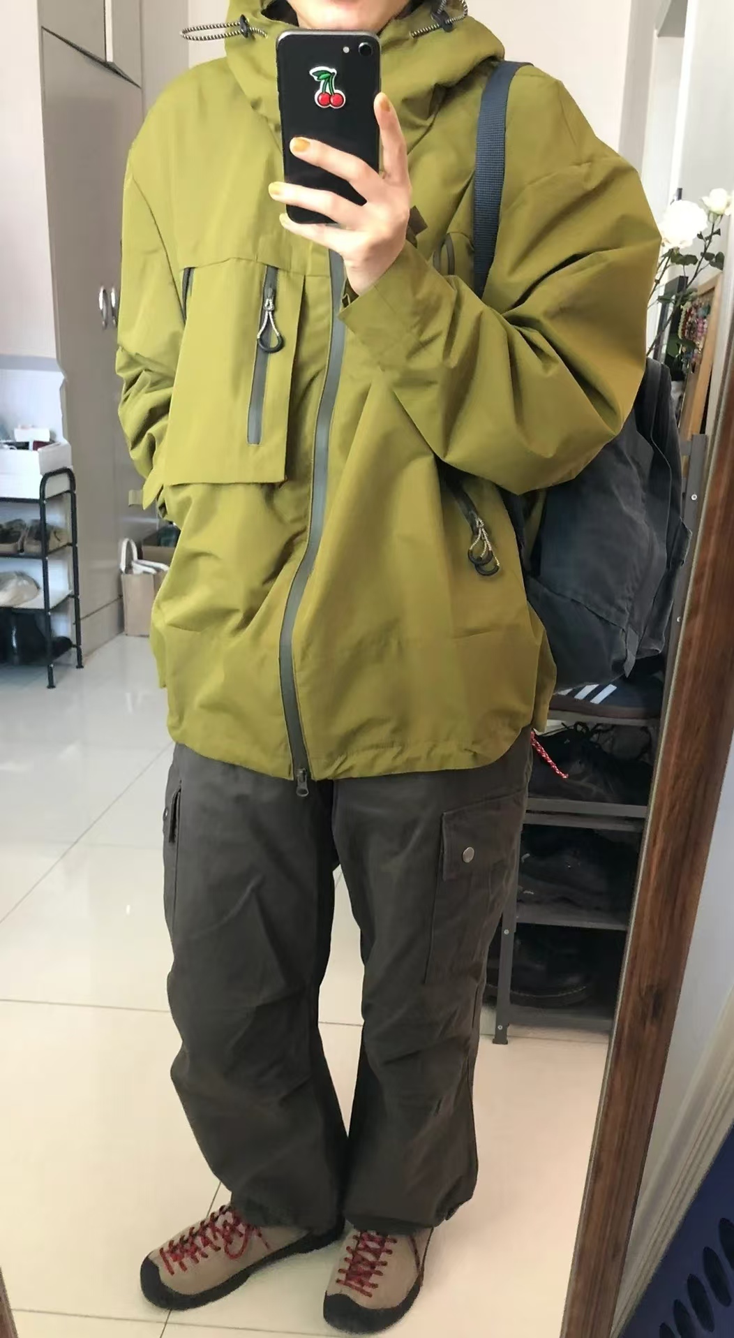 出去玩还得是冲锋衣呀!冲锋衣酷酷的~橄榄色我认为最好搭配,这款上身很显瘦,怎么搭都好看!户外旅行哪怕城市上班通勤穿都可以场景太多了!抗风保暖,防水能力max,能穿的季节好长~