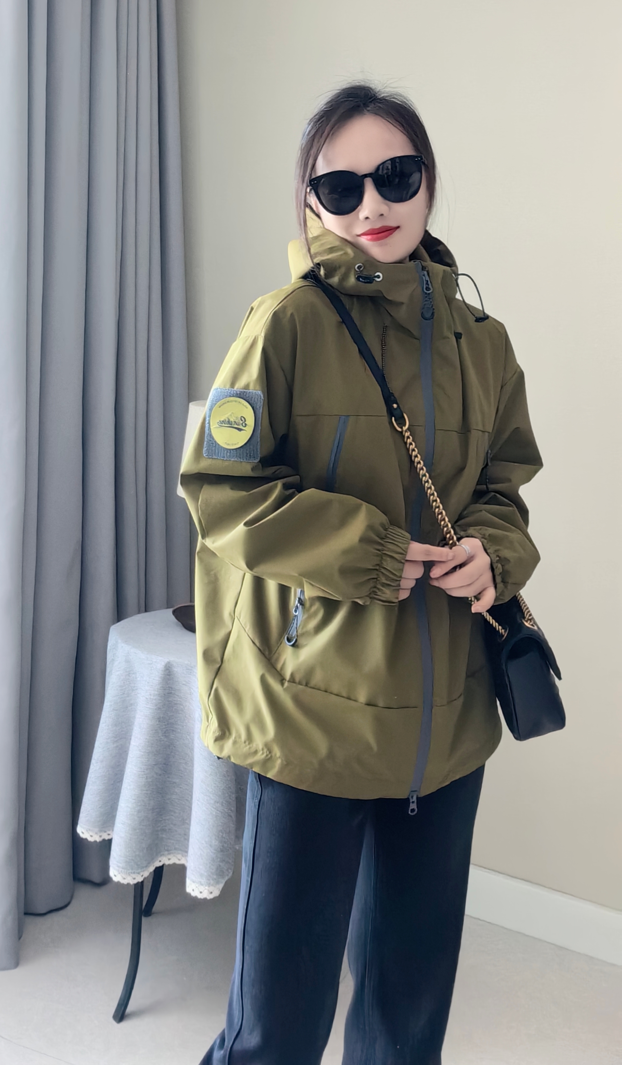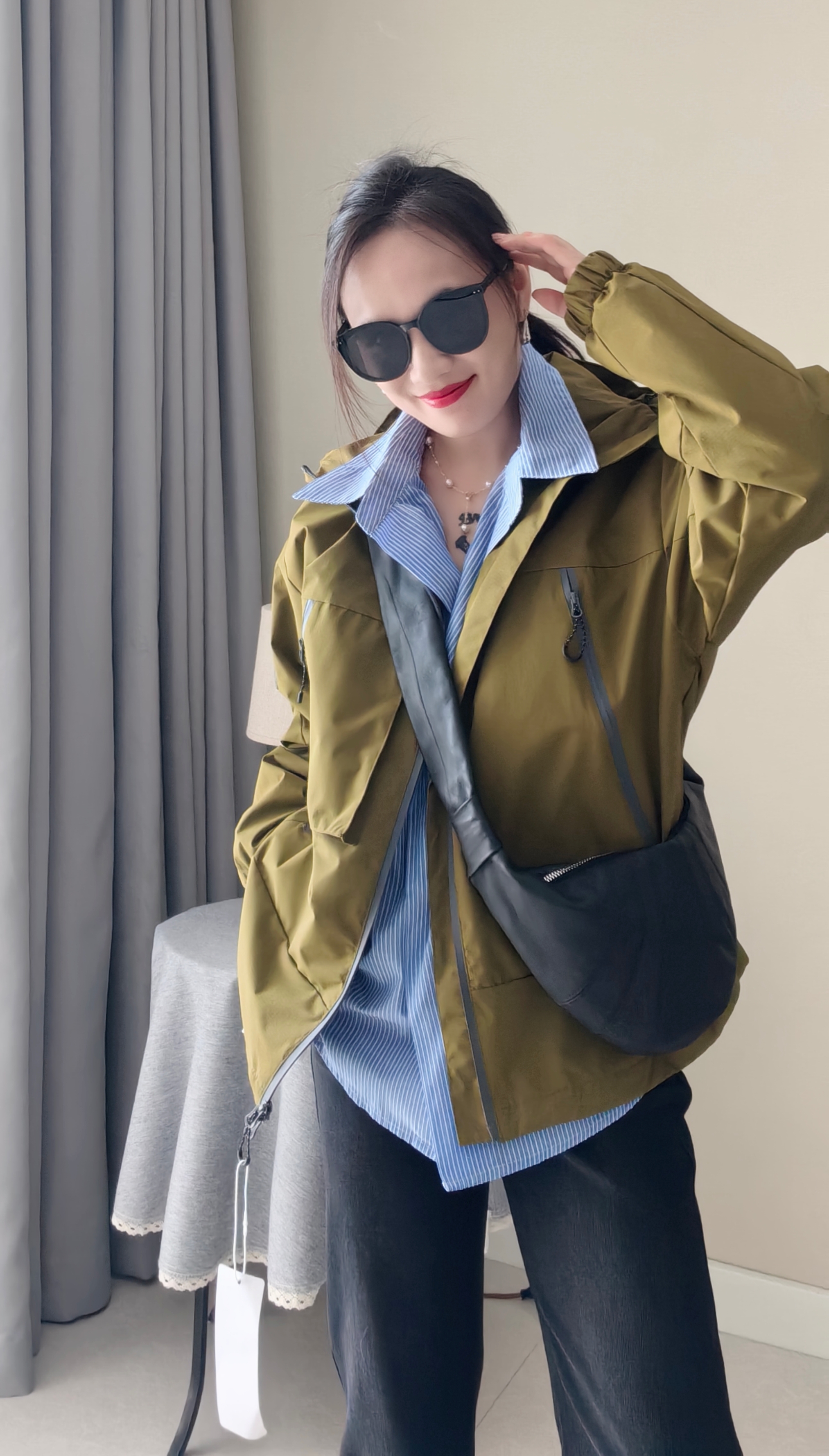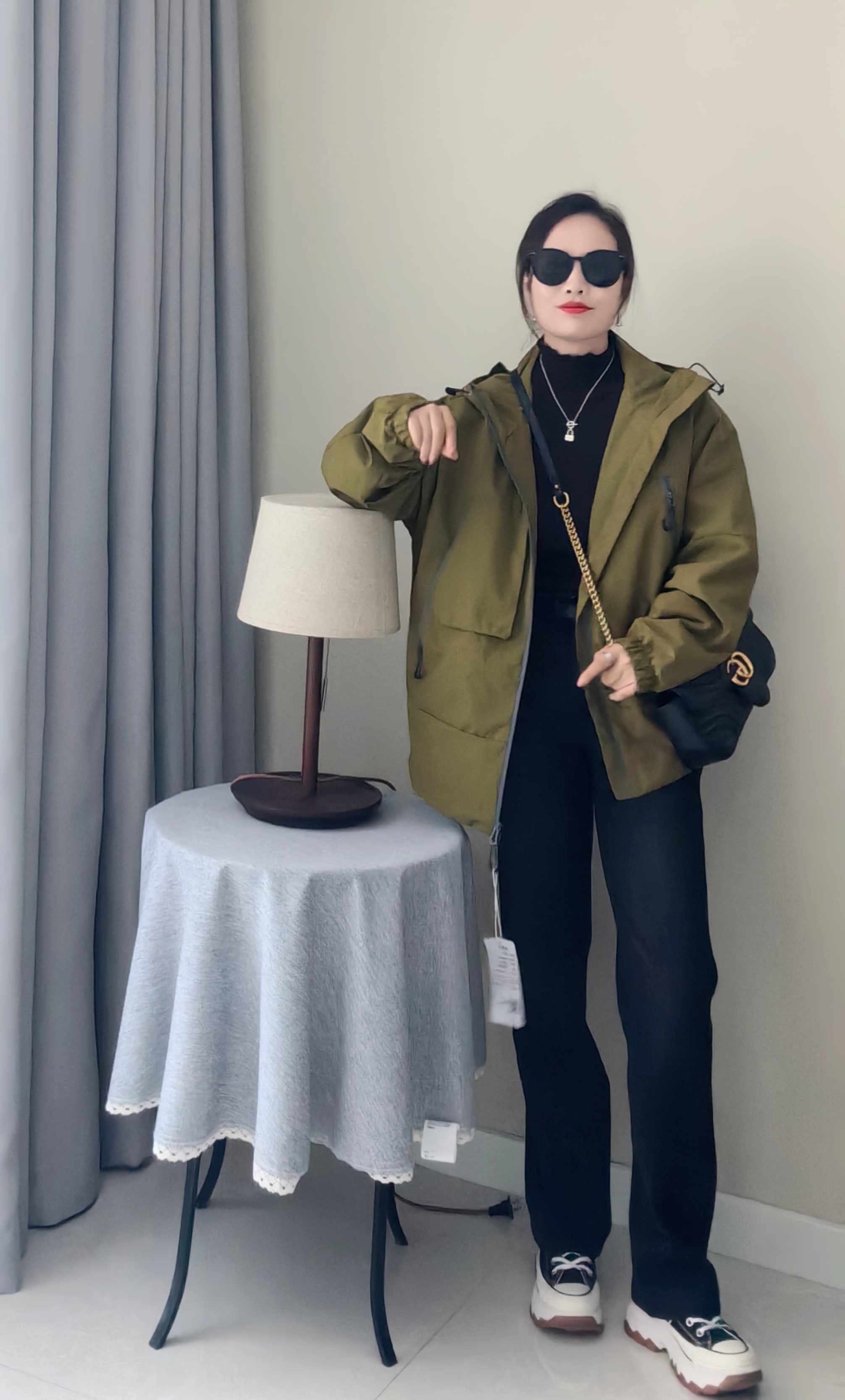 出去玩还得是冲锋衣呀!冲锋衣酷酷的~橄榄色我认为最好搭配,这款上身很显瘦,怎么搭都好看!户外旅行哪怕城市上班通勤穿都可以场景太多了!抗风保暖,防水能力max,能穿的季节好长~