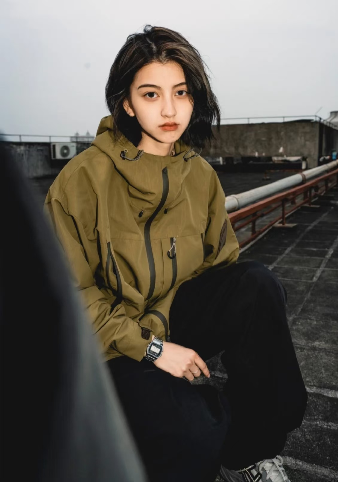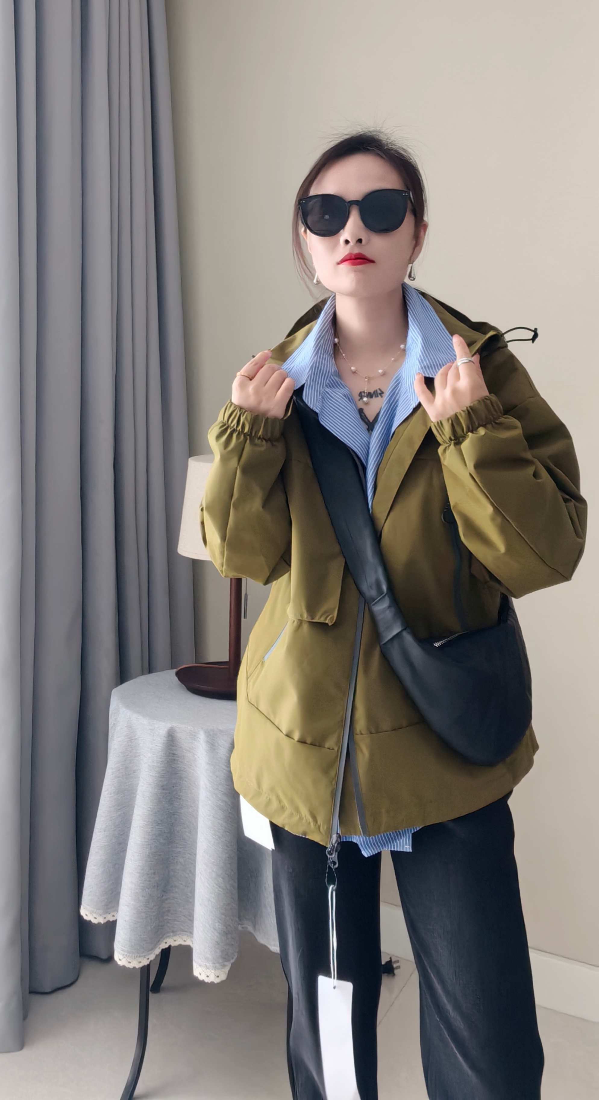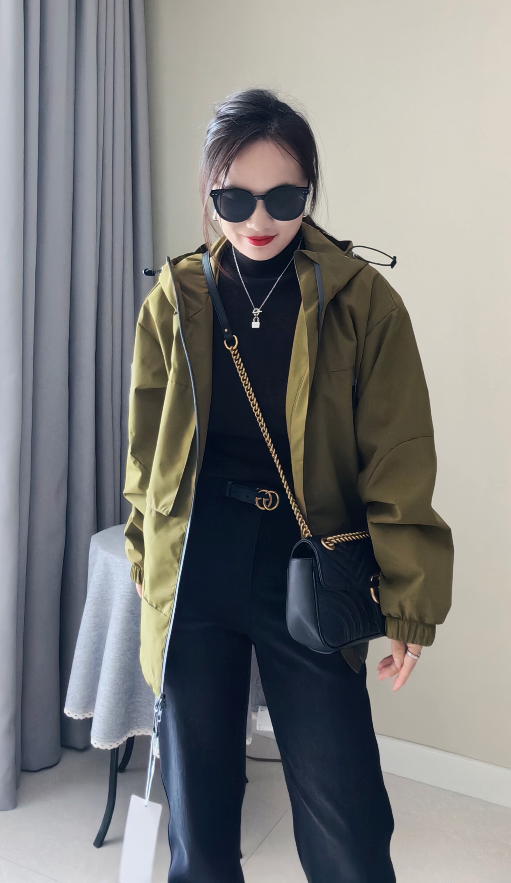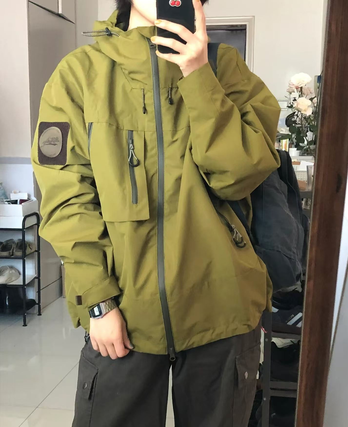 出去玩还得是冲锋衣呀!冲锋衣酷酷的~橄榄色我认为最好搭配,这款上身很显瘦,怎么搭都好看!户外旅行哪怕城市上班通勤穿都可以场景太多了!抗风保暖,防水能力max,能穿的季节好长~