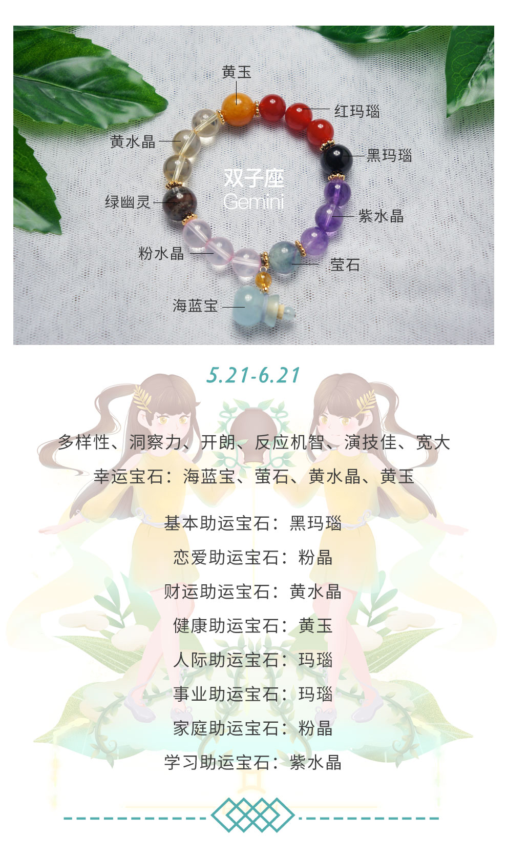 双子座星座守护石扩香手链 水晶 玉石 单圈时尚 滴精油 熏香