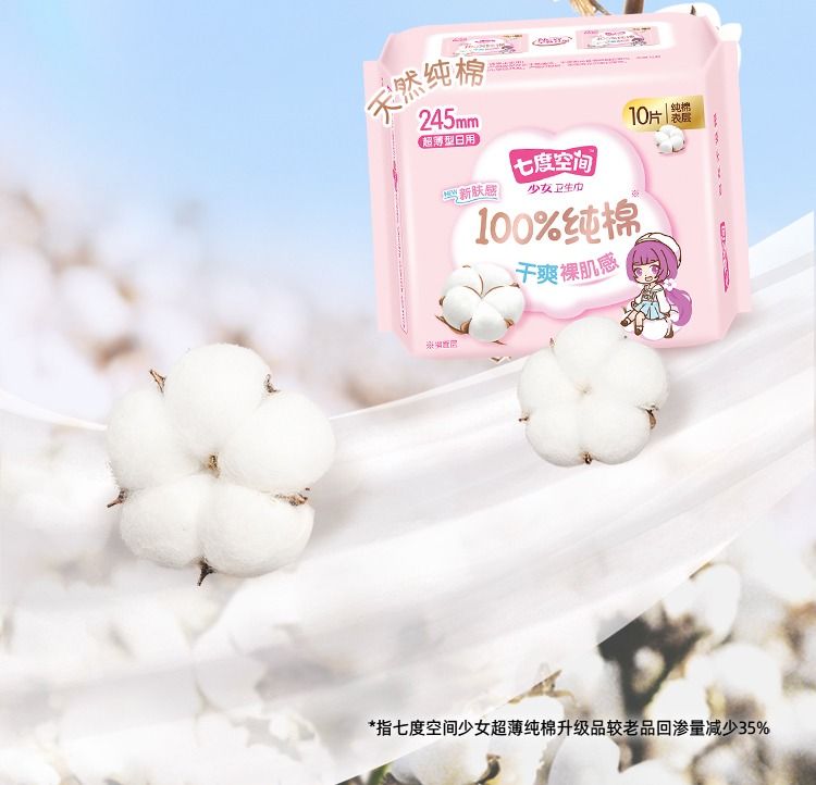 七度空间少女纯棉 日用245mm10片 超薄透气卫生巾