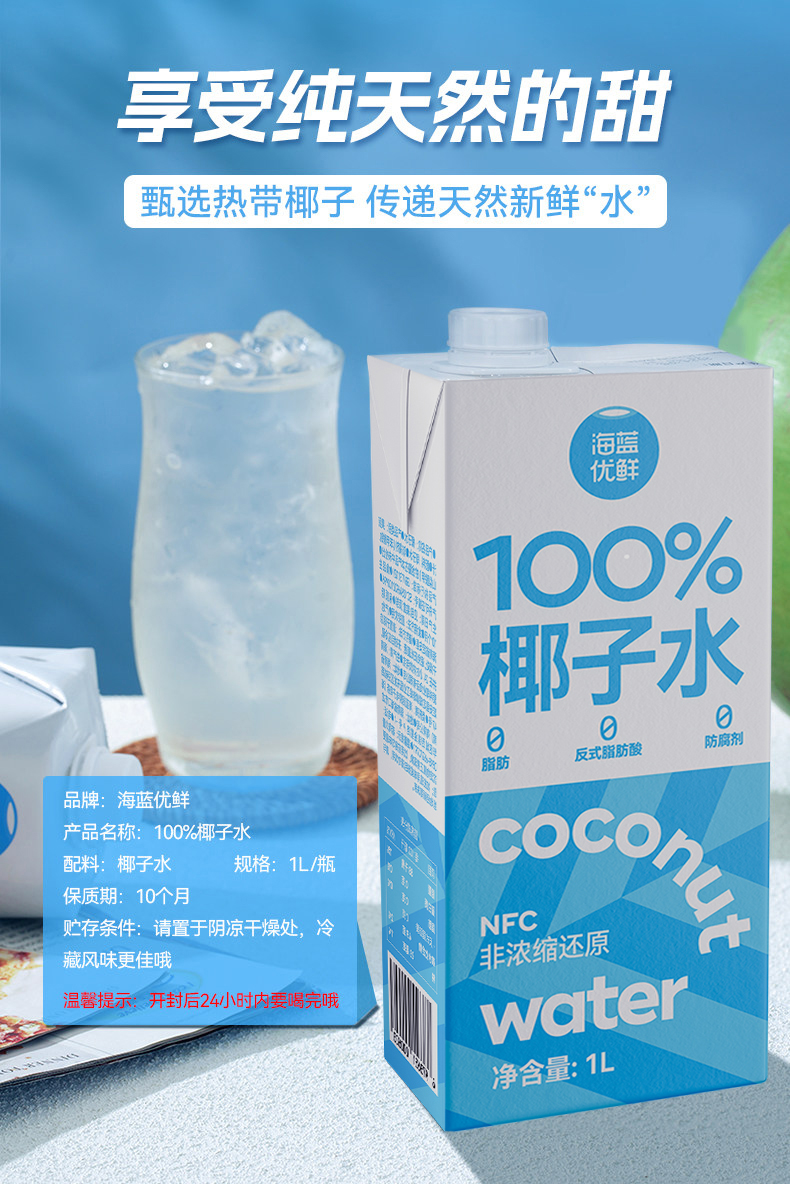 优鲜椰子水1L*2瓶【积分兑换】(直接饮用)