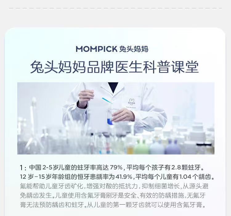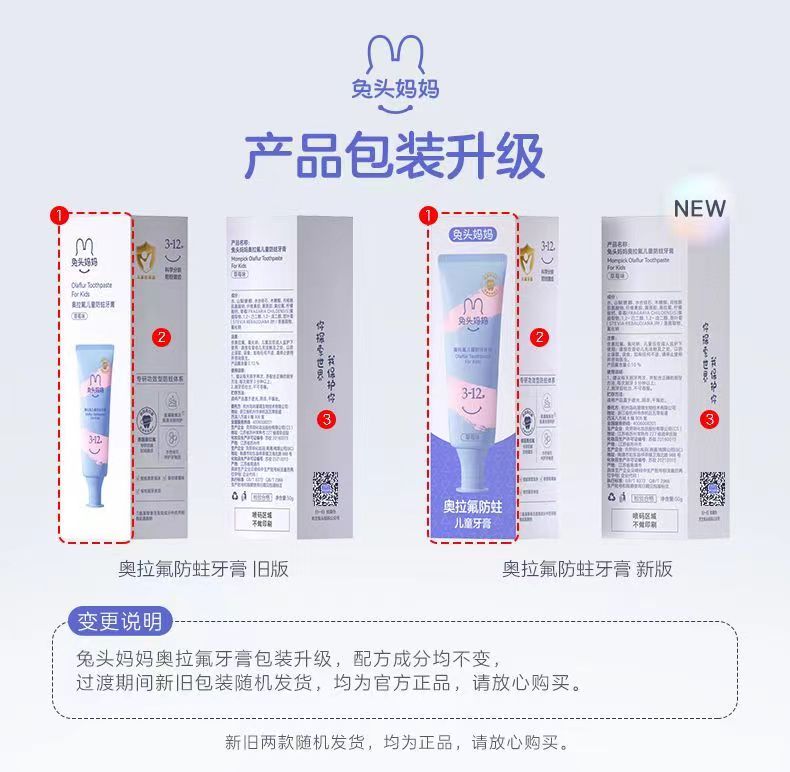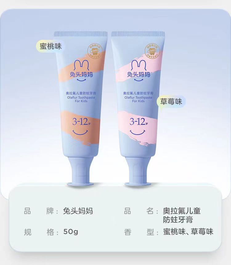 兔头妈妈儿童牙膏宝宝防蛀牙奥拉氟防龋齿含低氟1-6-12岁婴幼儿含氟牙膏