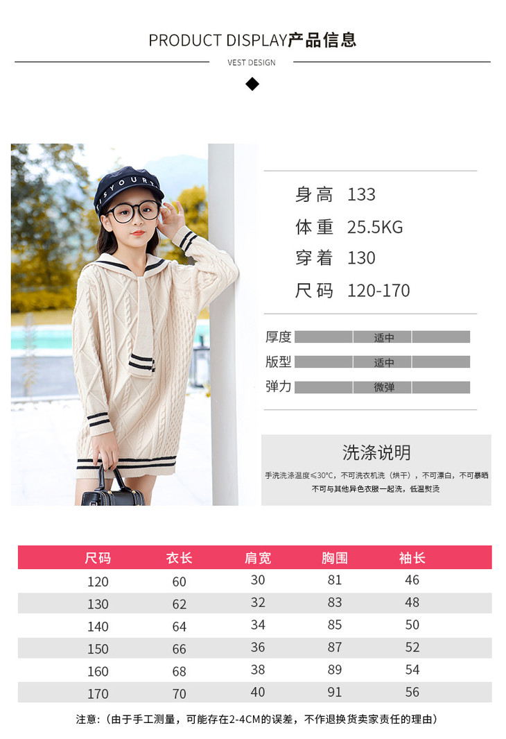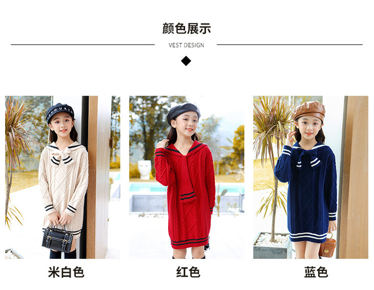 【女童连衣裙秋冬学院风毛衣】新款2020儿童公主裙高贵感大童女装长款