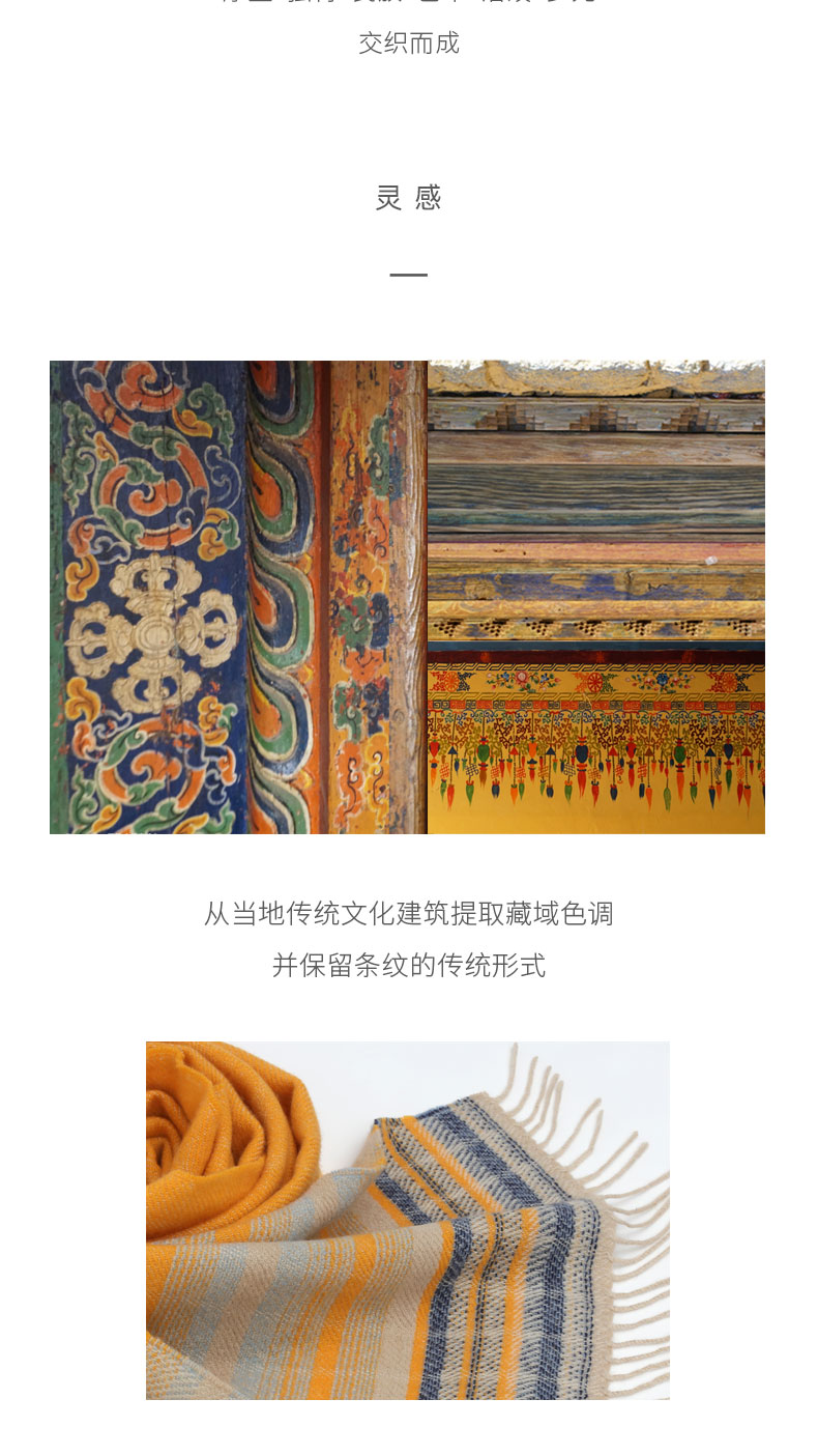 西藏手工氆氇羊绒流苏围巾 SJF95P556A