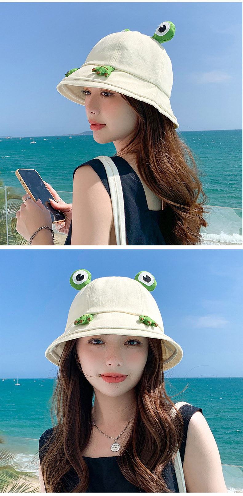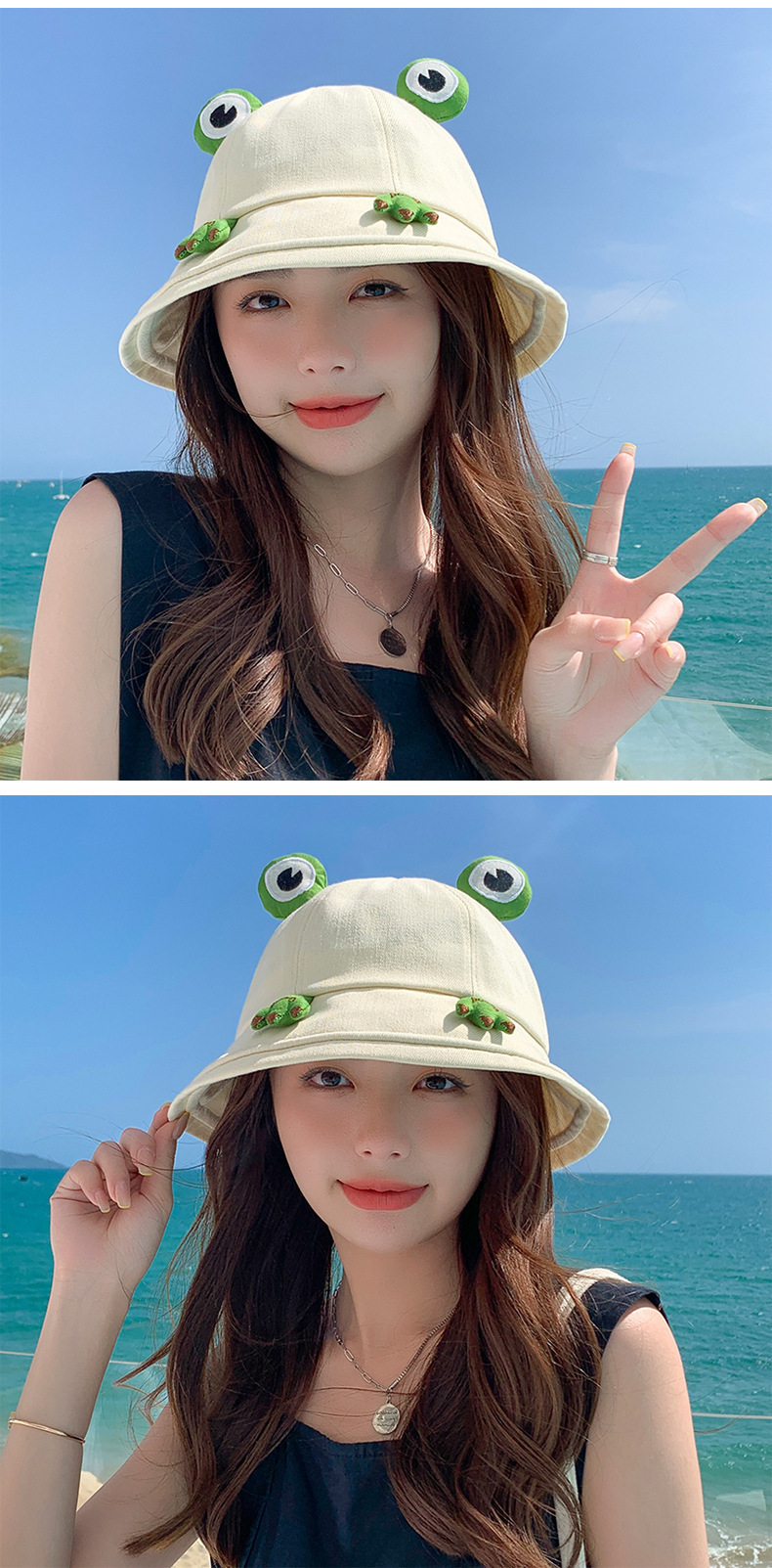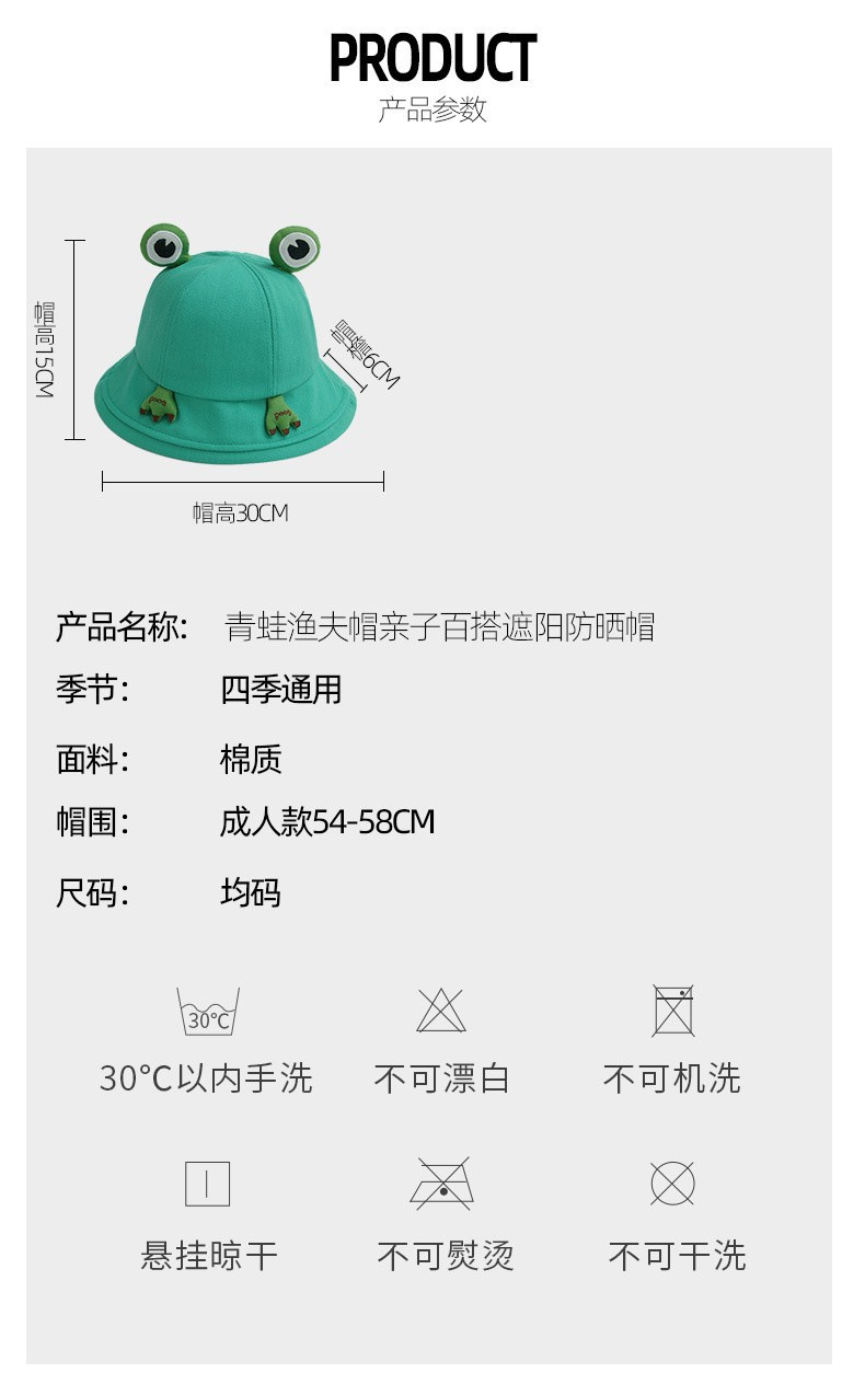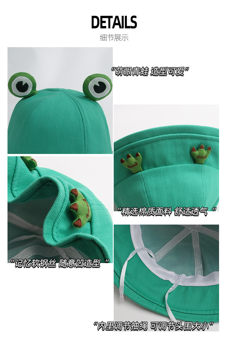 【简约而可爱!日系遮阳防晒卡通青蛙盆帽】触感舒适,亲肤透气夏日不闷热,随风轻扬的帽檐为你遮挡阳光,给你温柔的呵护,你将感觉自由而轻松,女春渔夫帽夏季户外海边出行帽同款可爱
