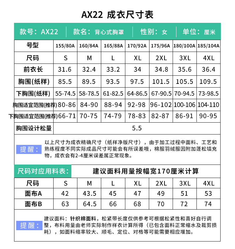 裁缝学苑AX22中老年前扣文胸纸样女装内衣无钢圈背心妈妈衣服样板