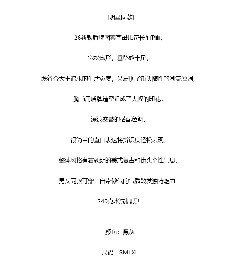 【edj1】明星款!26新款情侣印花时尚长袖T恤!!