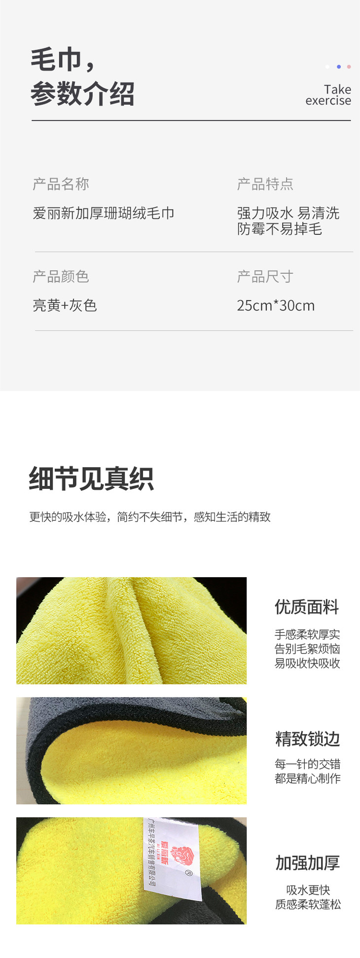 爱丽新 加厚双面珊瑚绒 洗车毛巾吸水擦车布专用玻璃不掉毛