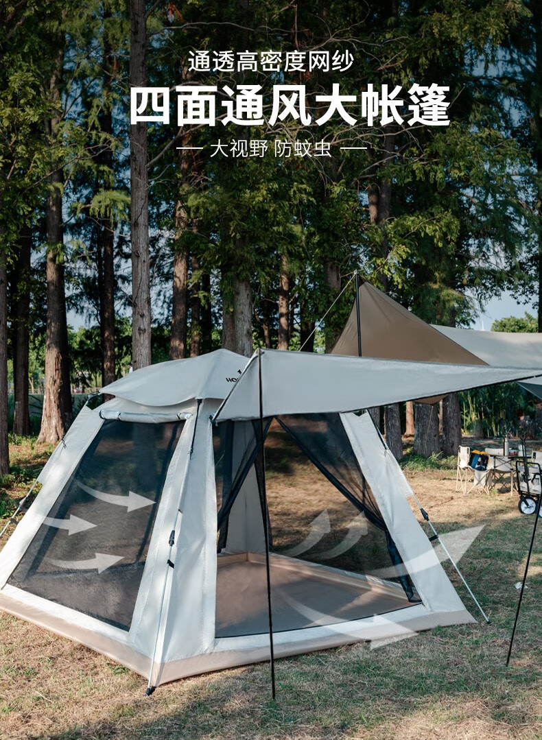 商品配件:外包装袋+地钉*10+调节扣*6+防风绳*6+防雨布*1+支撑杆*6节2根