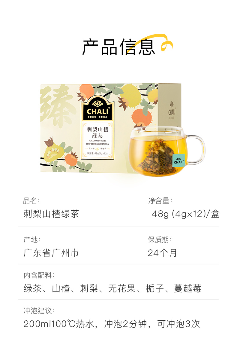 【89元任选2件】CHALI刺梨山楂绿茶 水果茶包花茶茶里公司出品养生茶