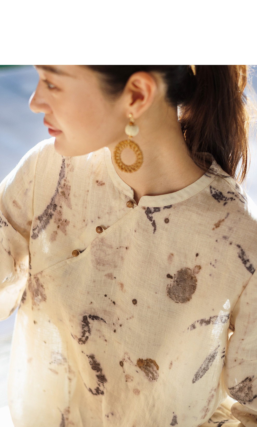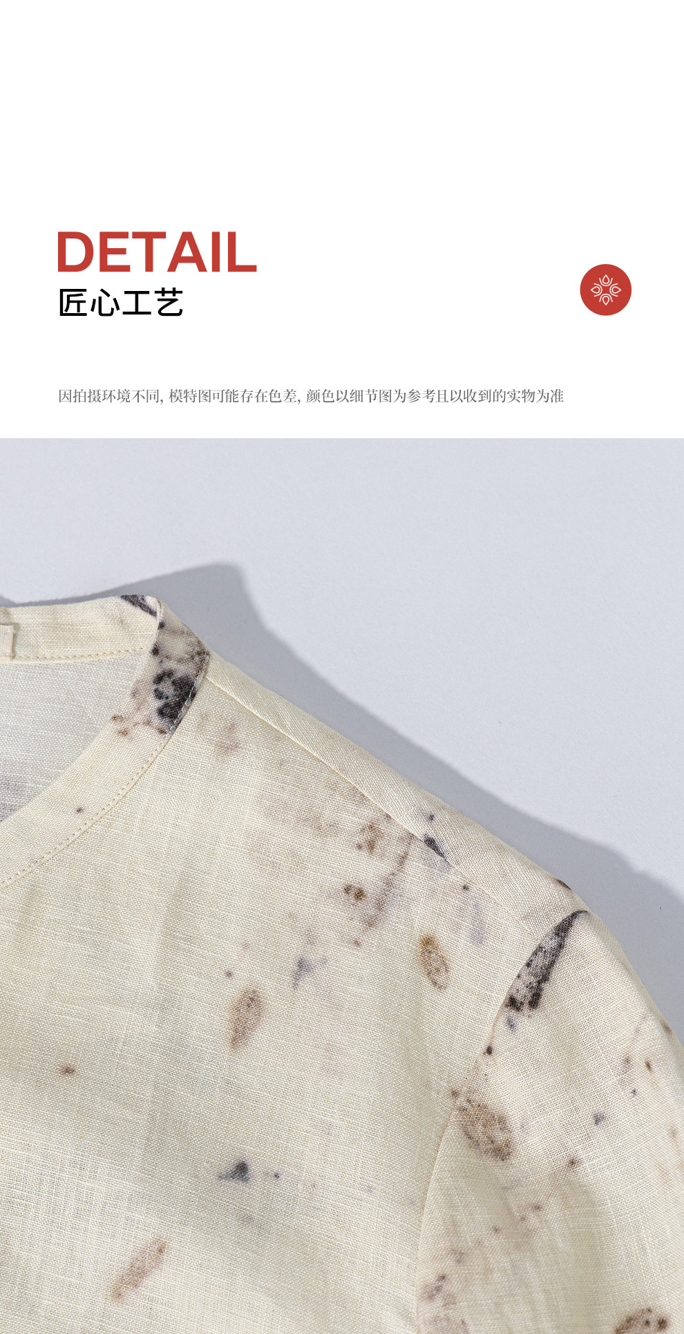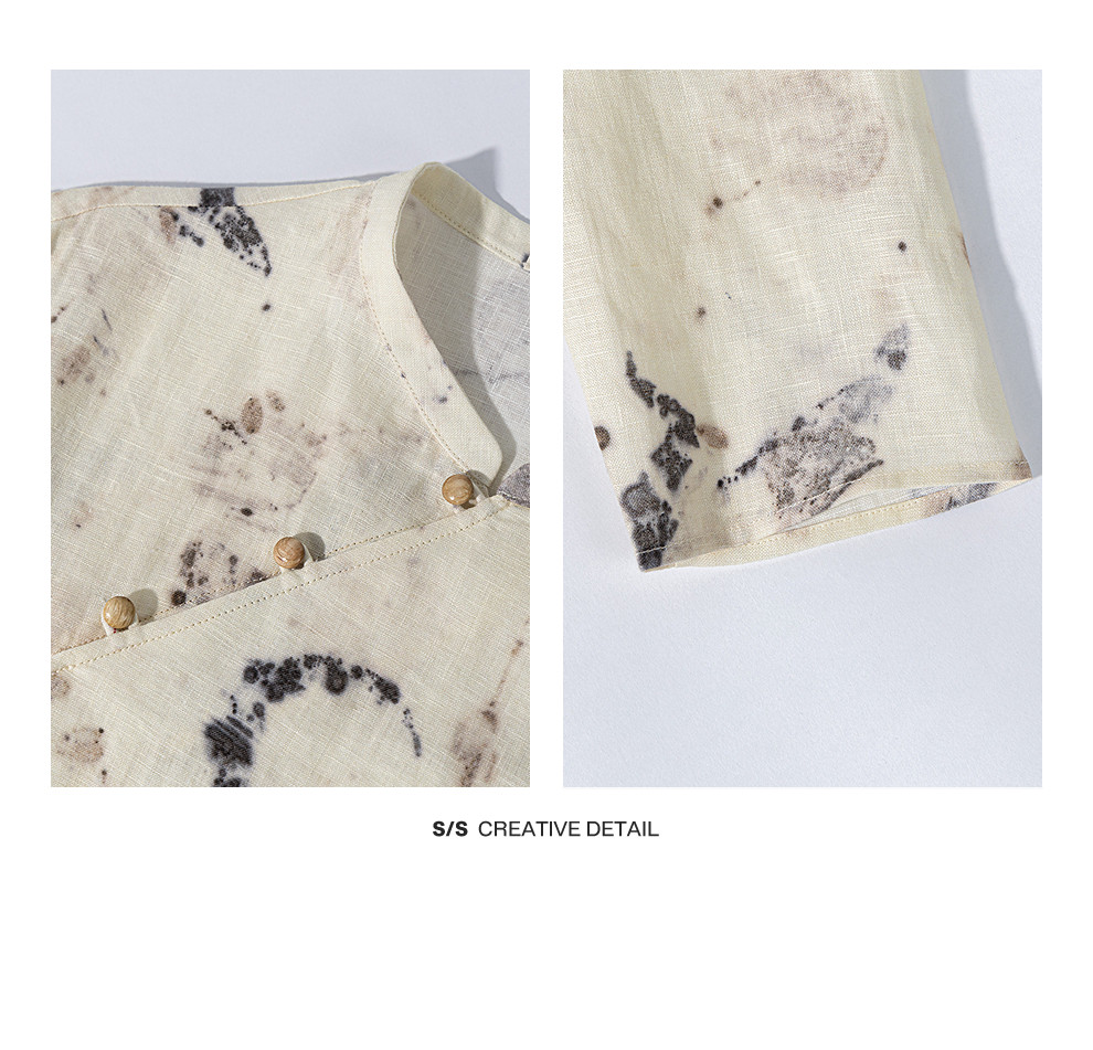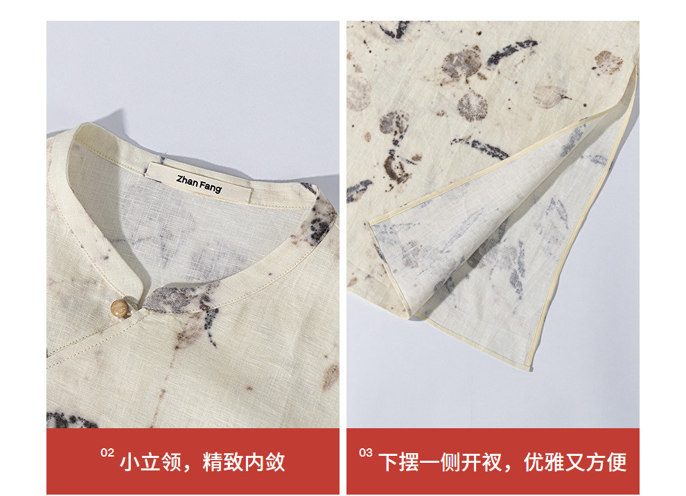 绽放155朵/亚麻数码印花新中式立领斜襟长袖连衣裙女阔感文艺长裙