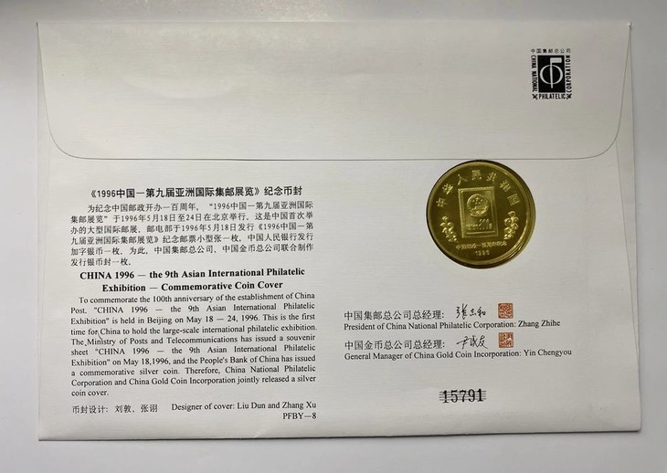 《1996年中国第九届亚洲国际集邮展览》纪念币封包含: