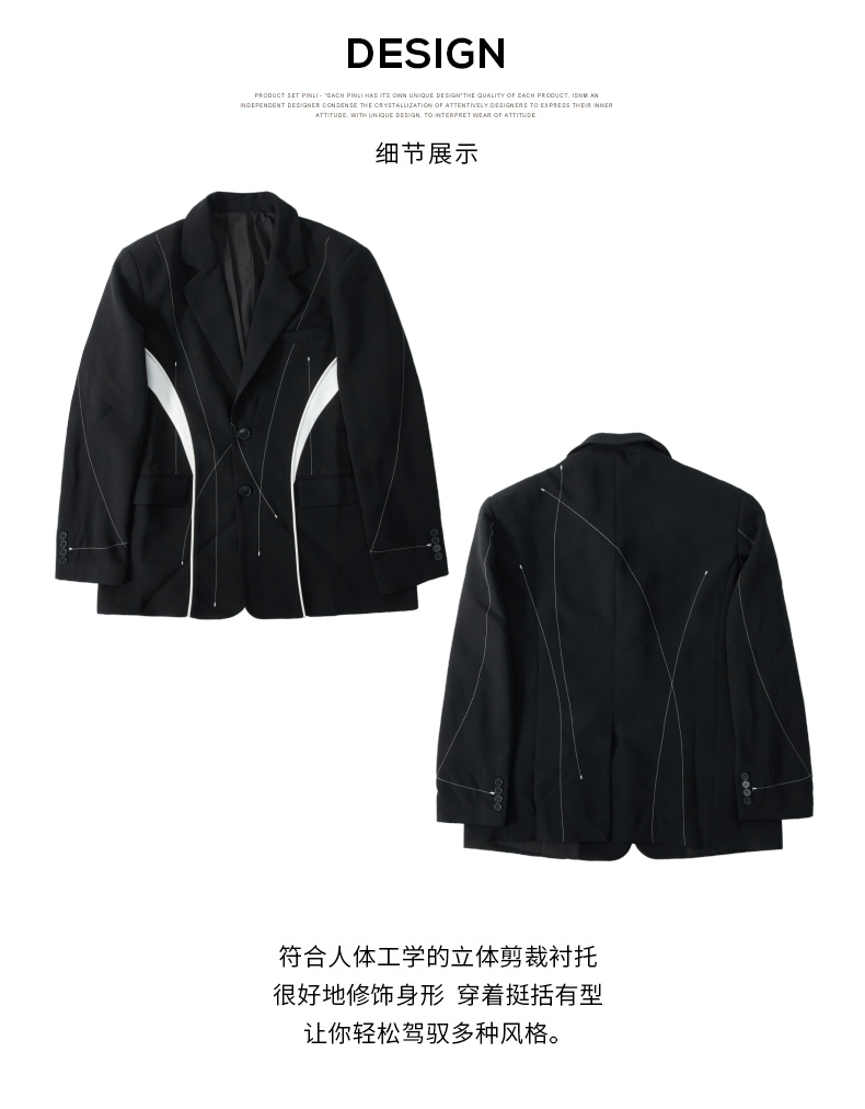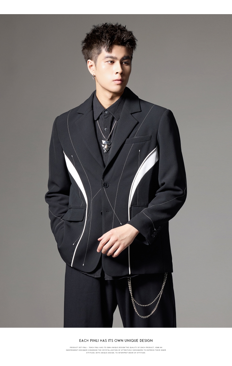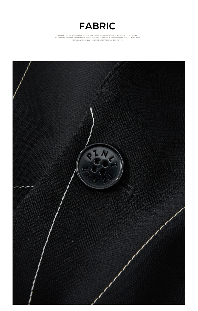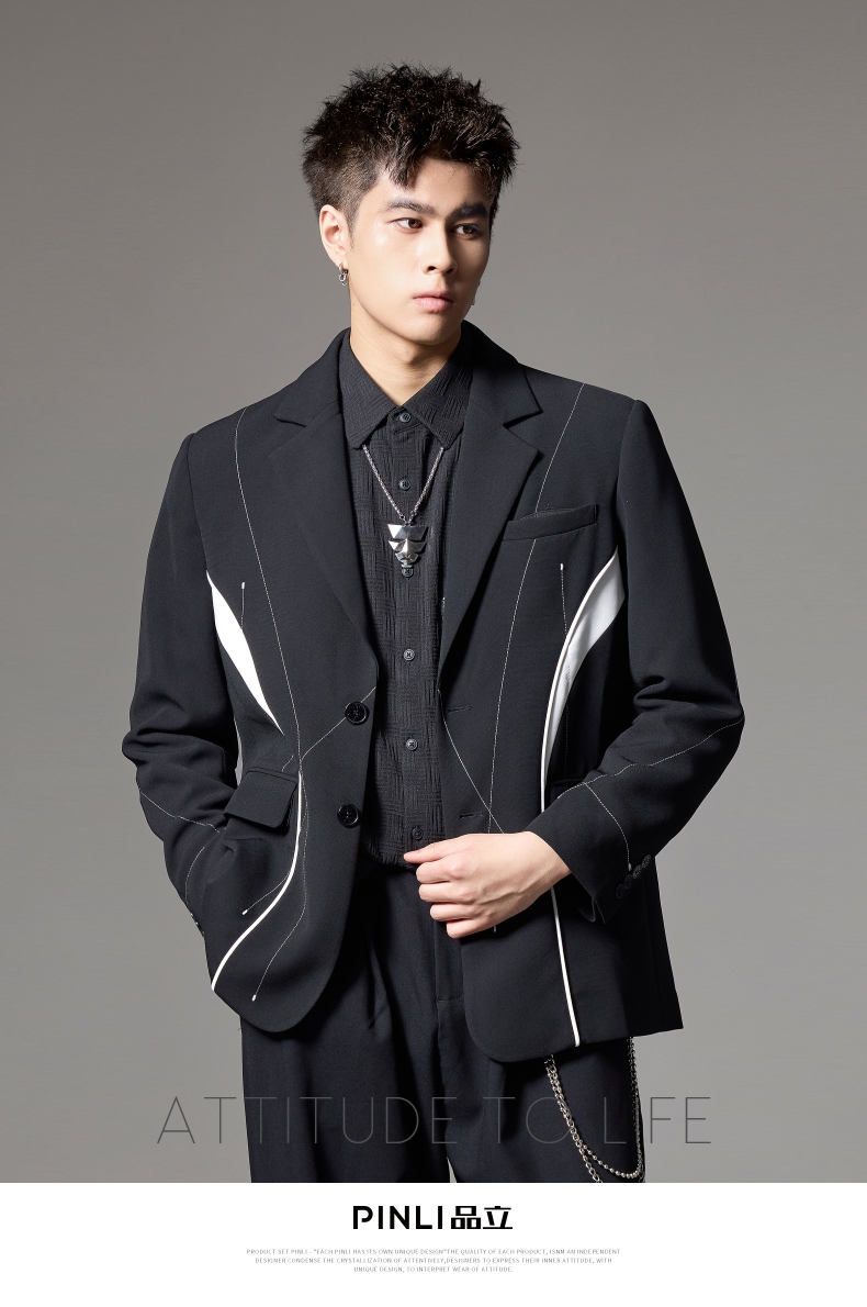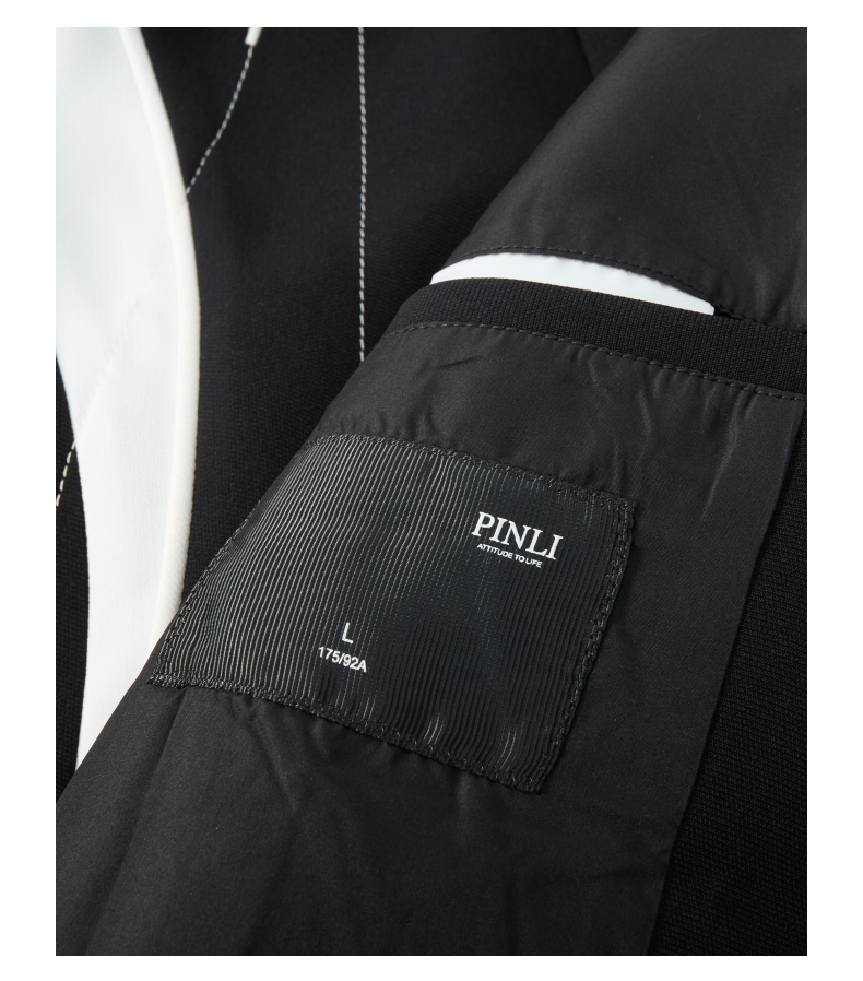 PINLI品立秋季新款黑白拼接撞色西装男明线高级休闲西服外套B243106035