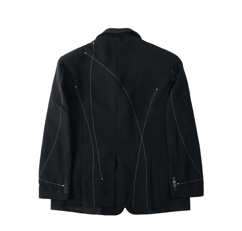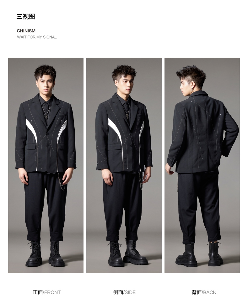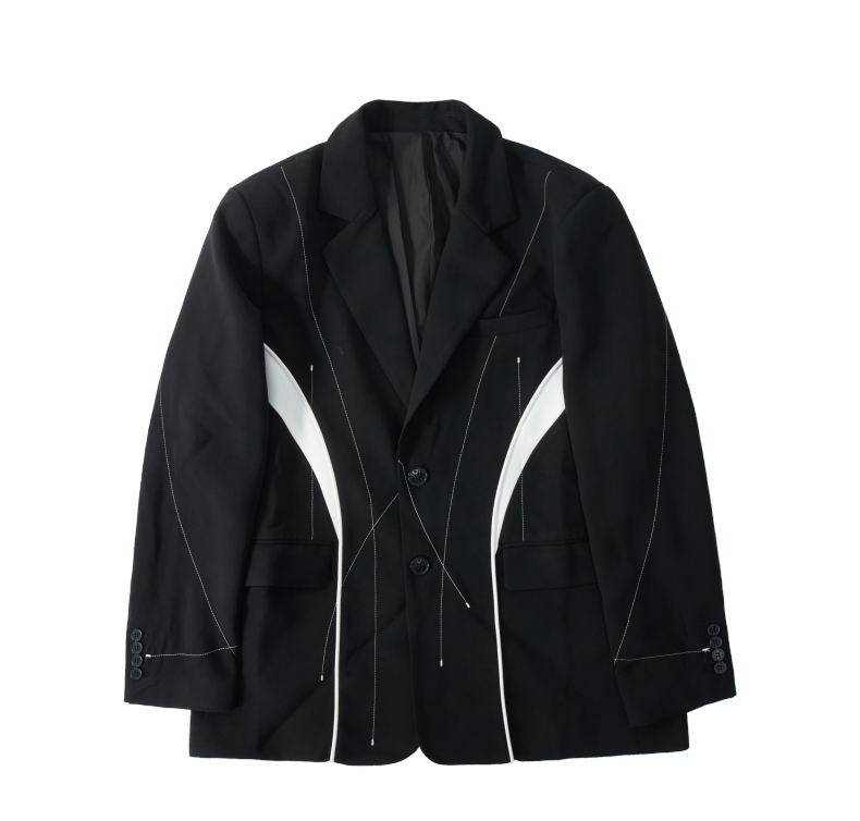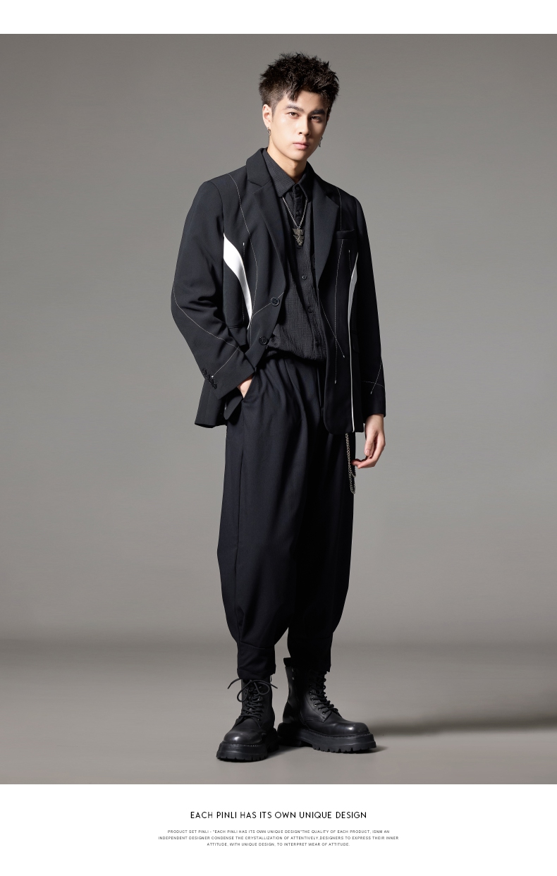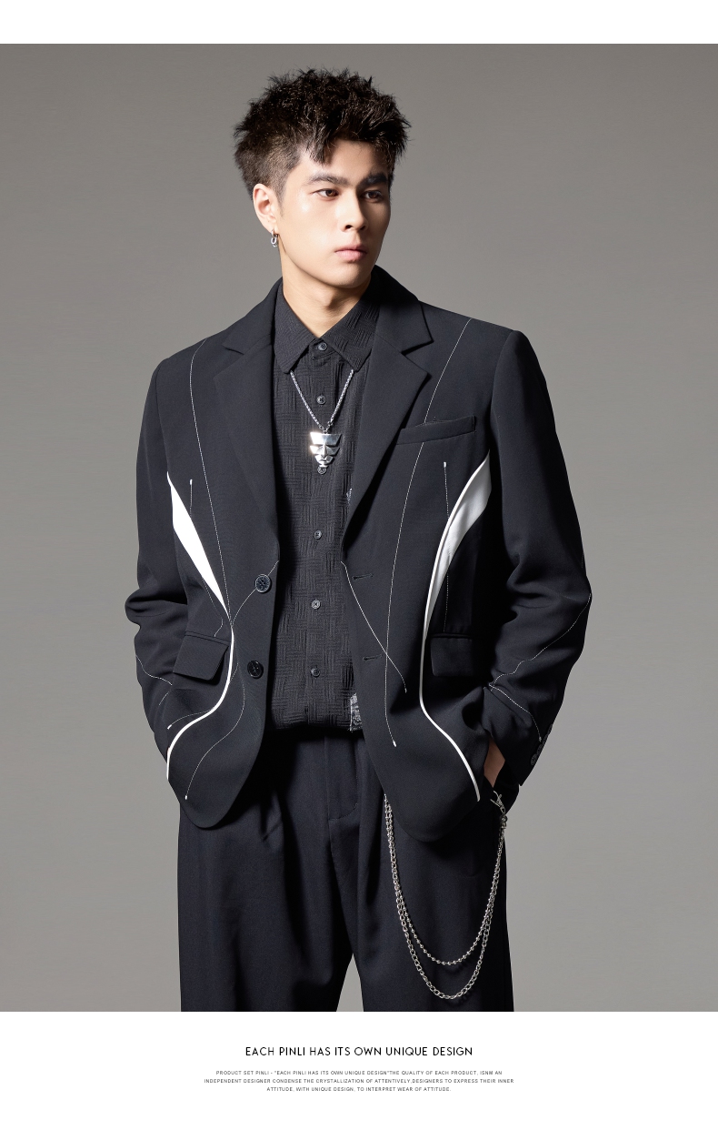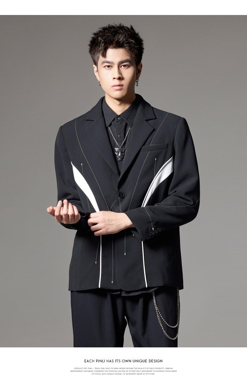 PINLI品立秋季新款黑白拼接撞色西装男明线高级休闲西服外套B243106035