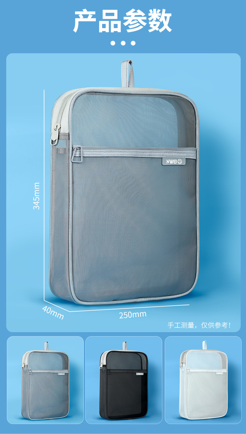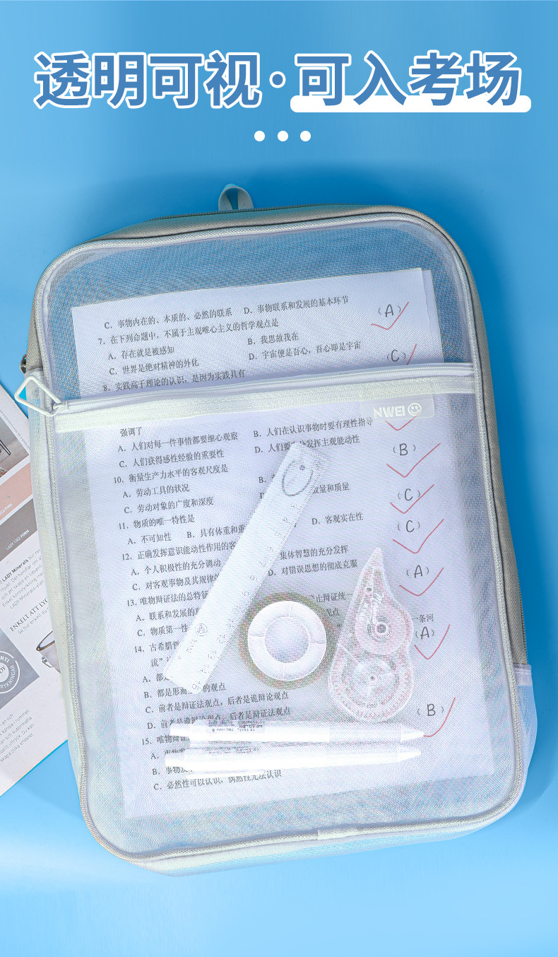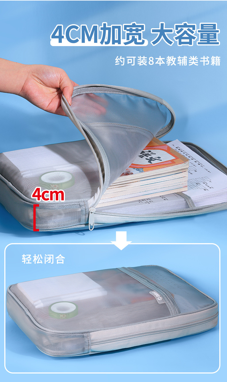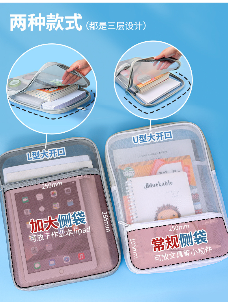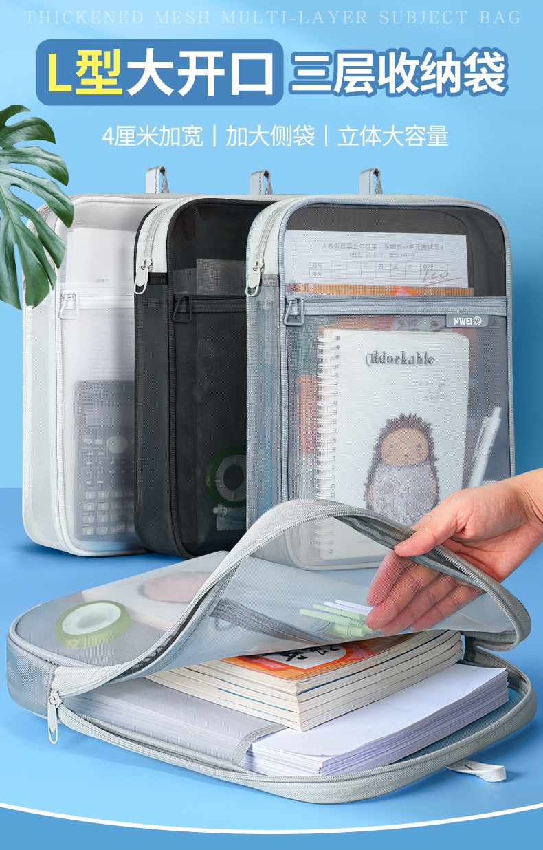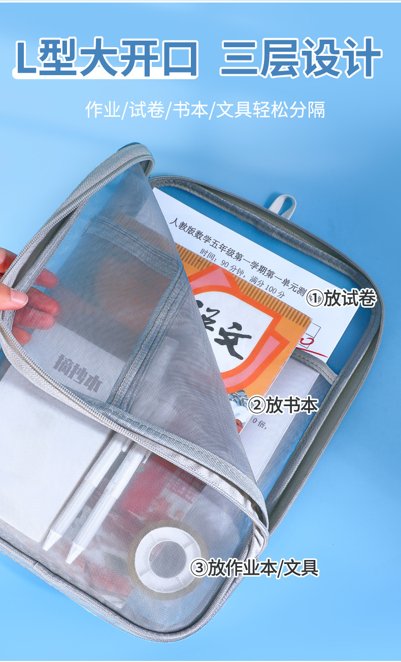 L型科目学科分类袋文件袋透明试卷收纳袋拉链式手提小学生拎书袋_HLY