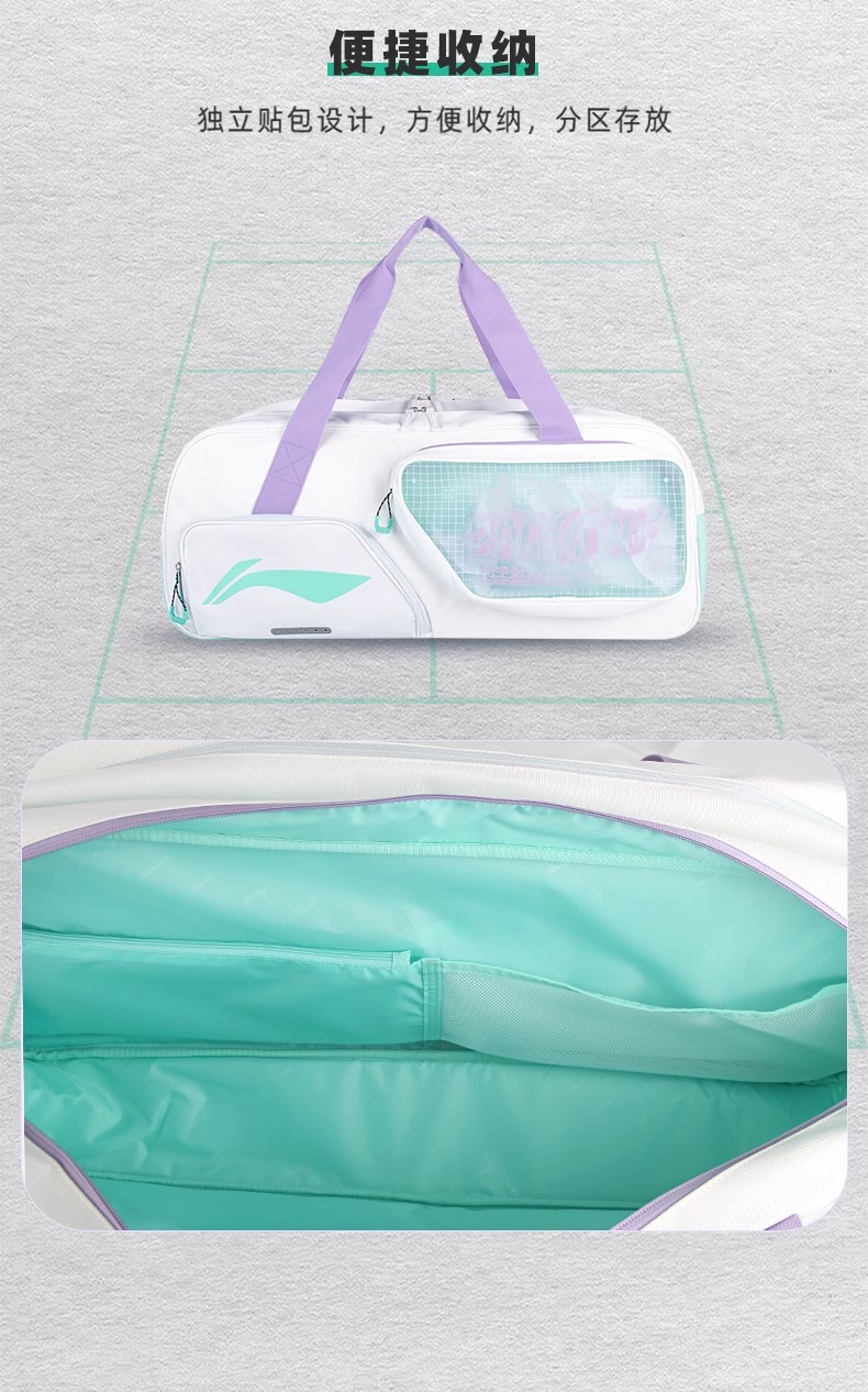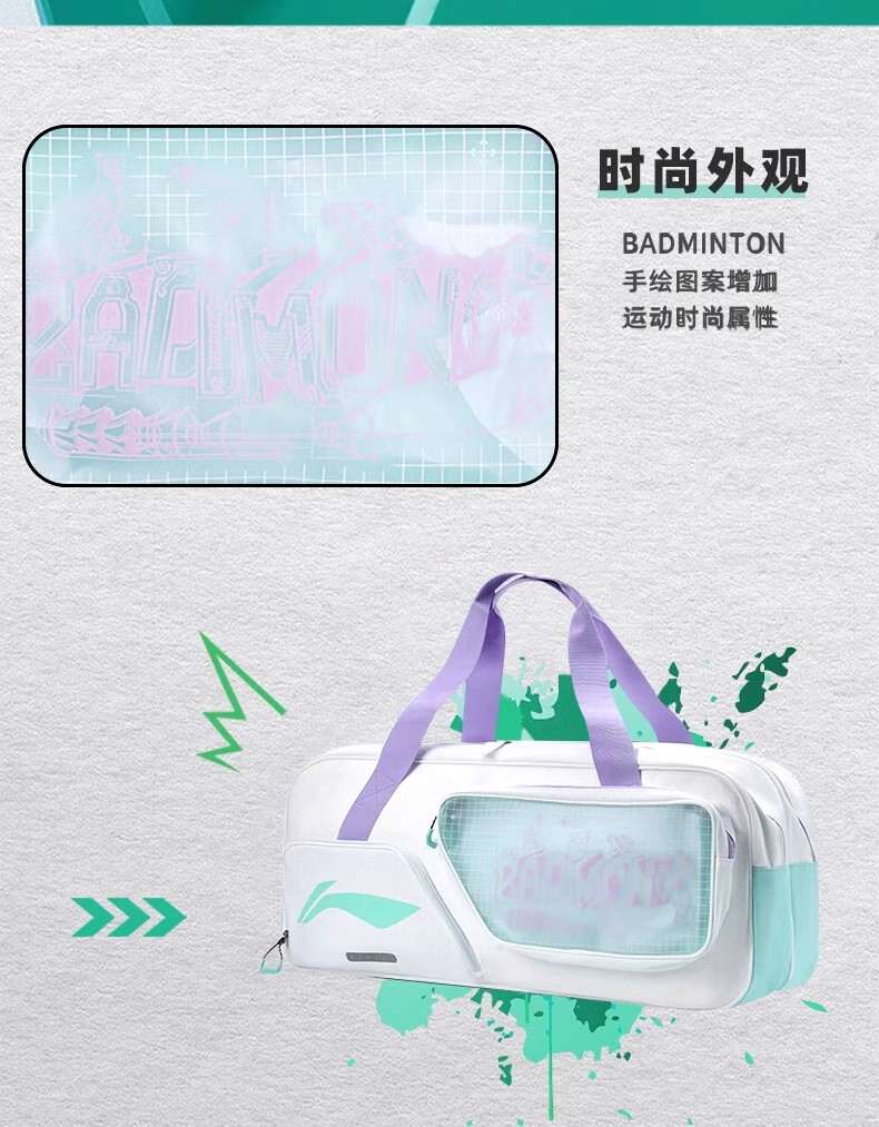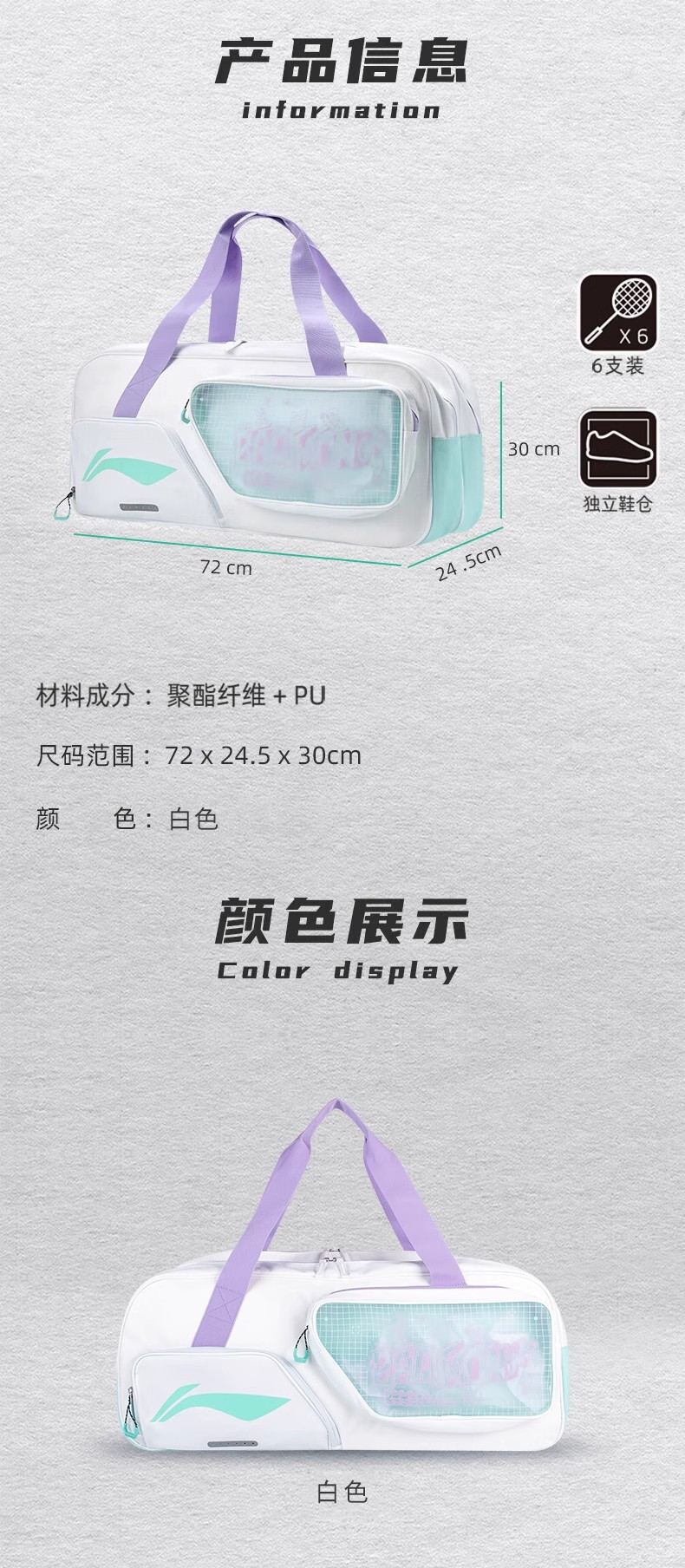 李宁 羽毛球包 男女同款 大容量6支装单肩方包多功能收纳袋 72 x 24 x 29cm ABJU015