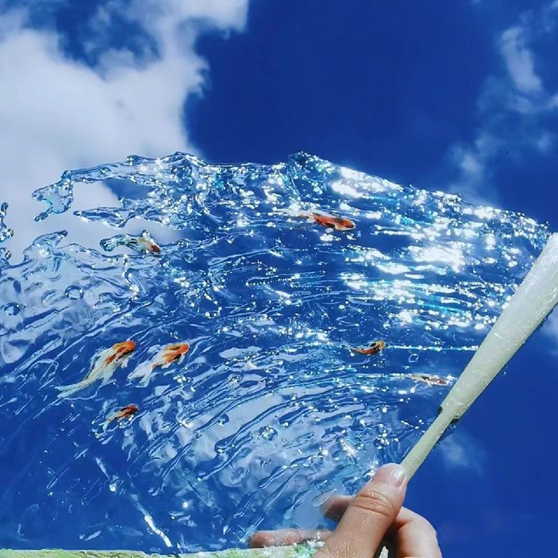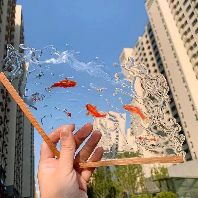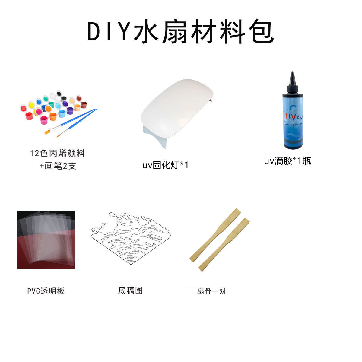 夏日水扇滴胶水做的扇子diy材料包玻璃颜料相框滴胶寒冰扇