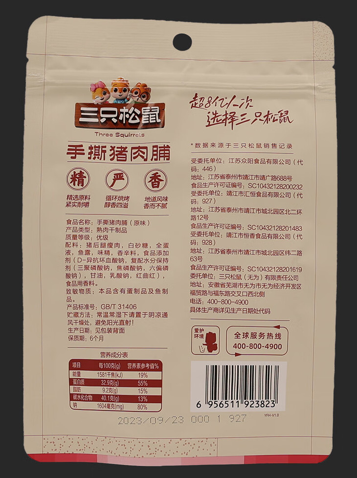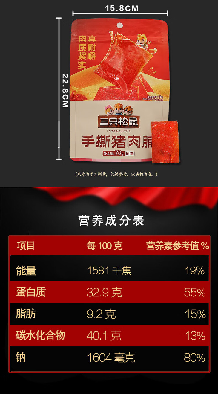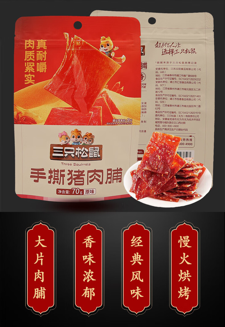 (百万补贴) 三只松鼠手撕猪肉脯70g