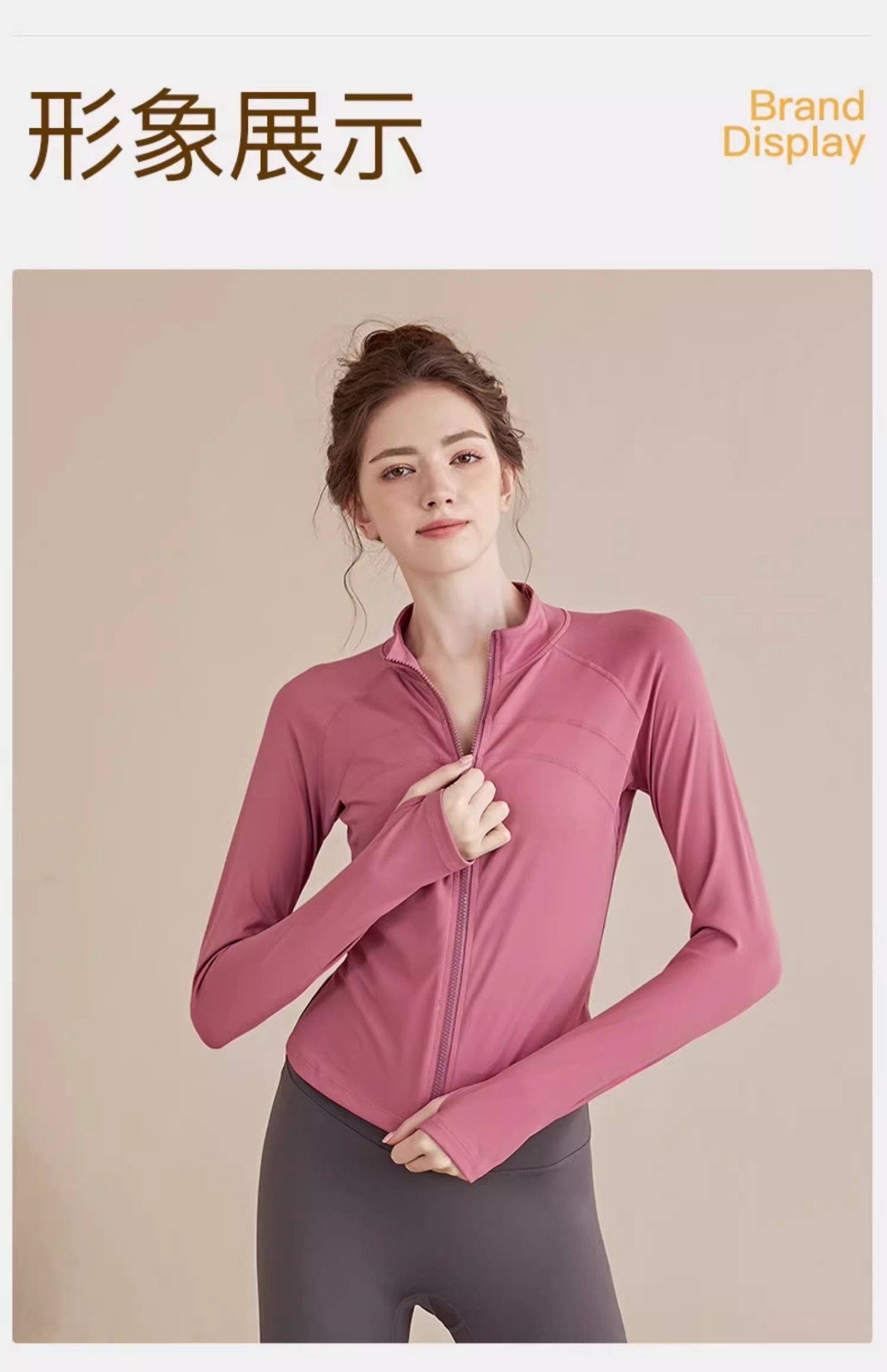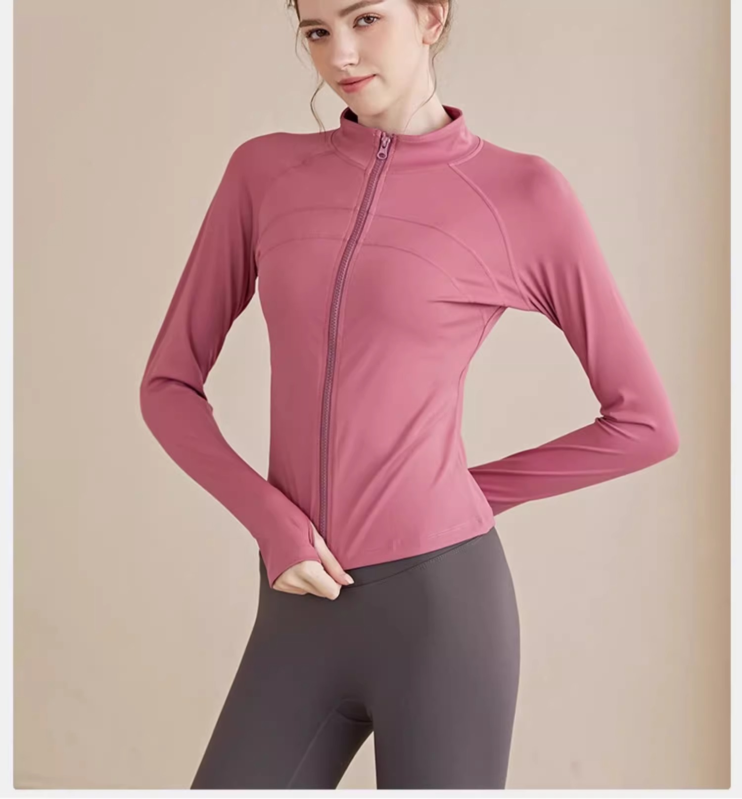 跃牌【瑜堂系列】大码拉链运动外套弹力紧身运动上衣欧码修身显瘦瑜伽服女JYMW085
