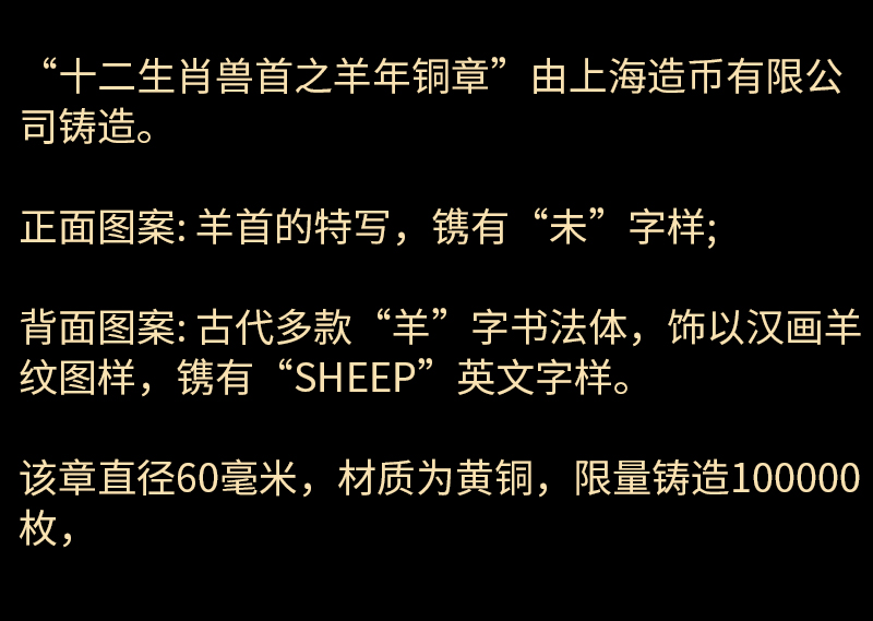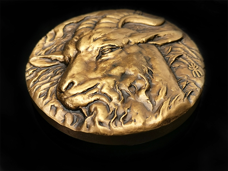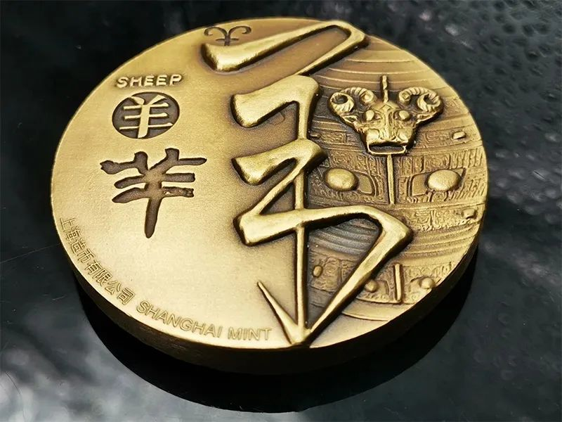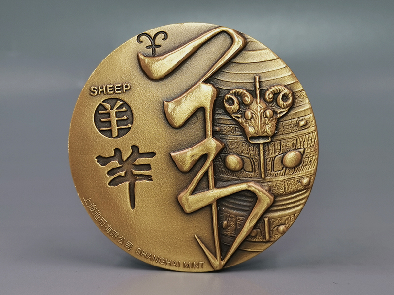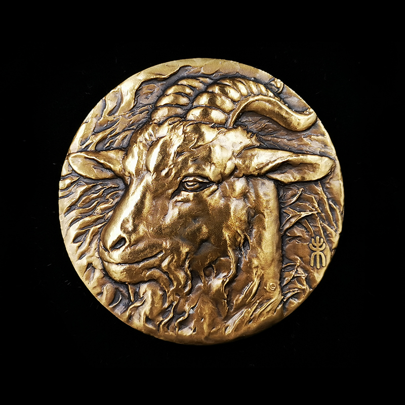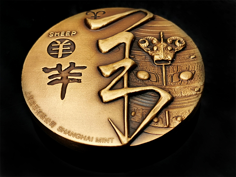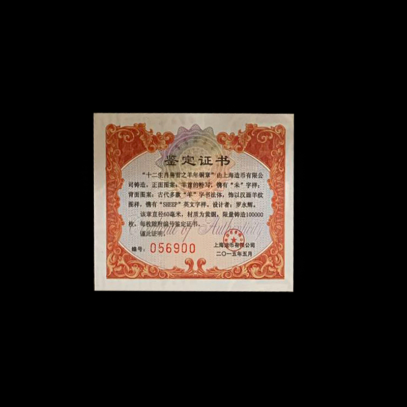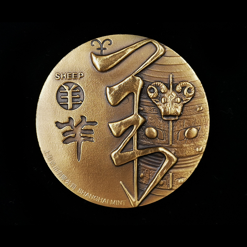 河南中钱 2015年十二生肖兽首之羊年铜章 高浮雕 上海造币 带证书
