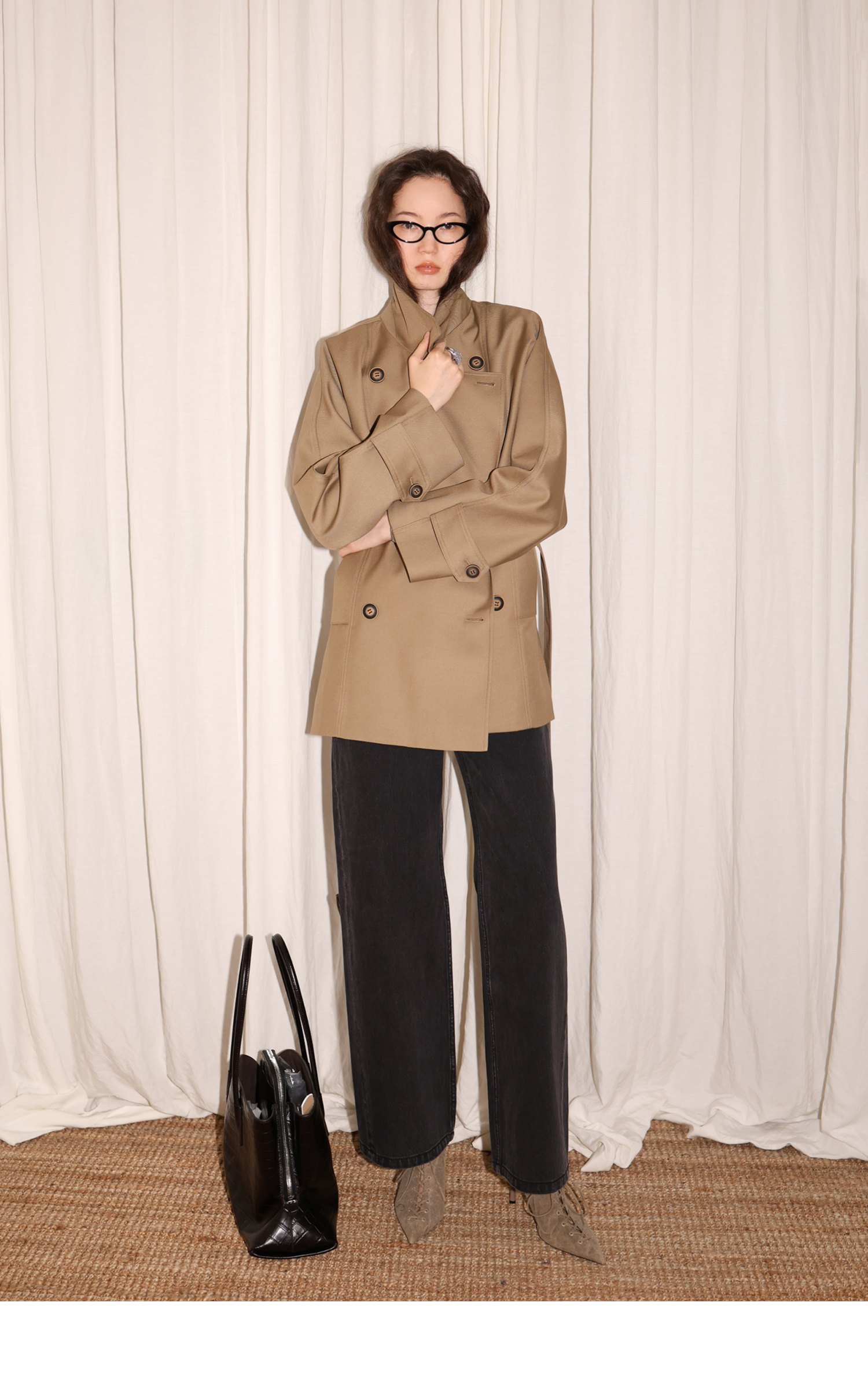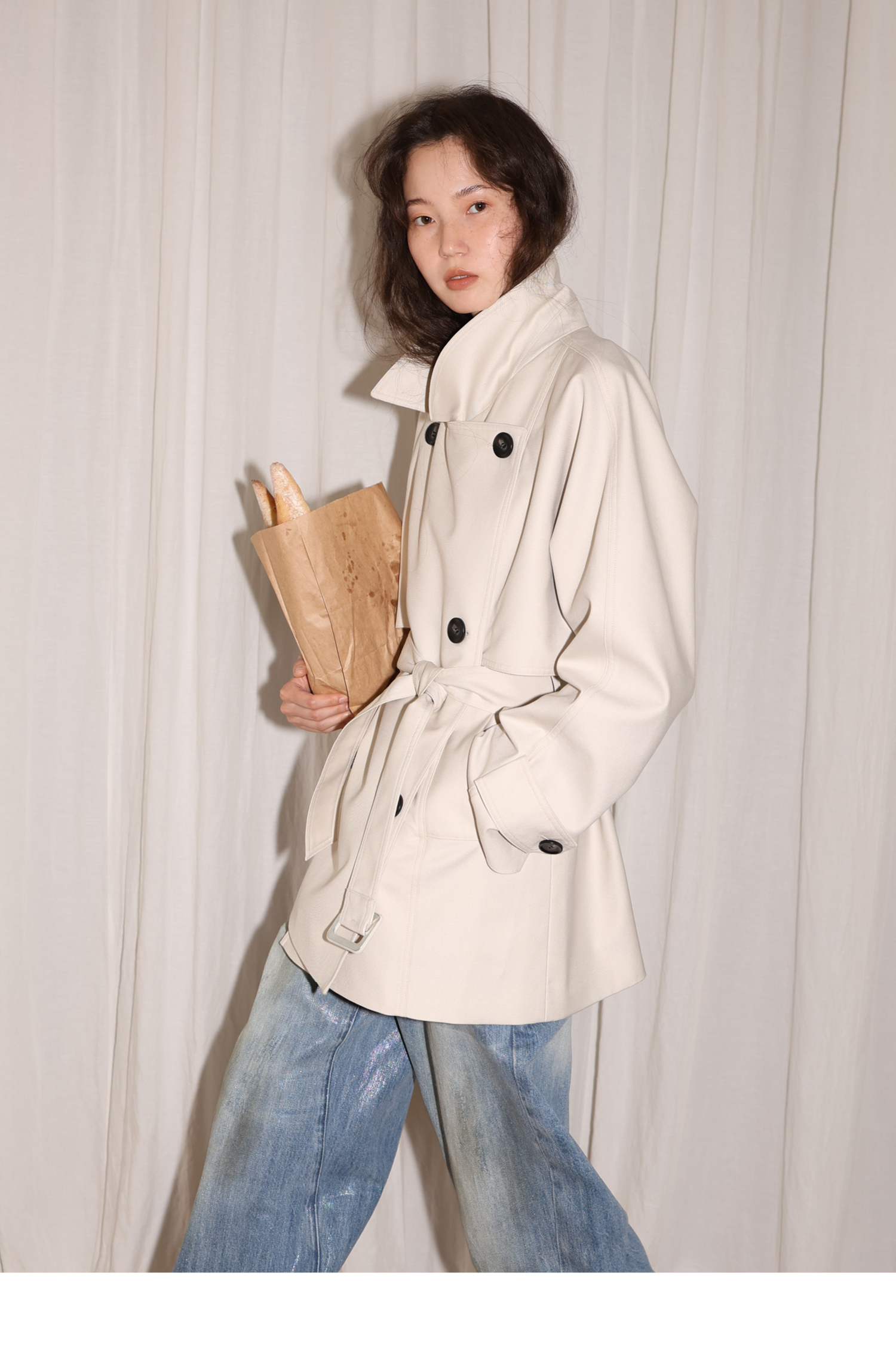 素舶 JI典斜纹立体廓形翻领短款风衣外套女