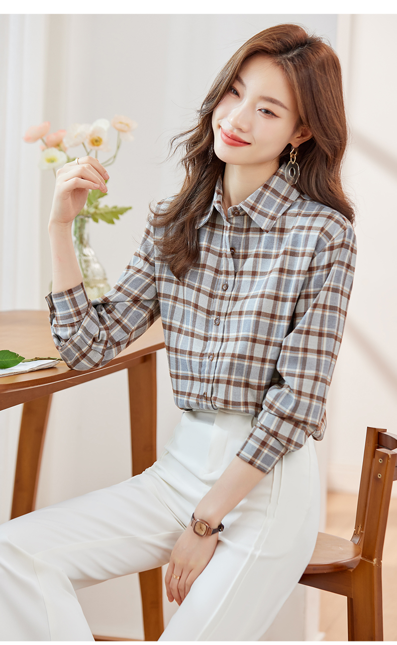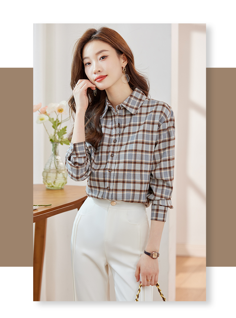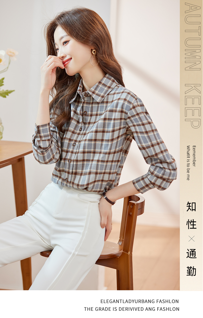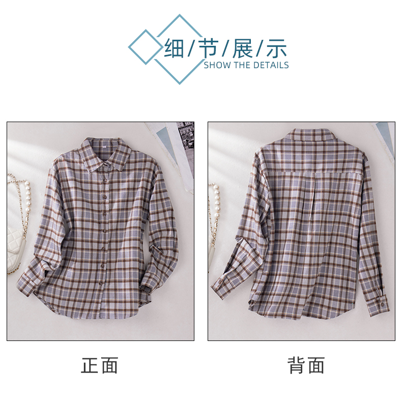新款长袖衬衫百搭小众衬衣时尚春秋宽松韩版格纹春季女士