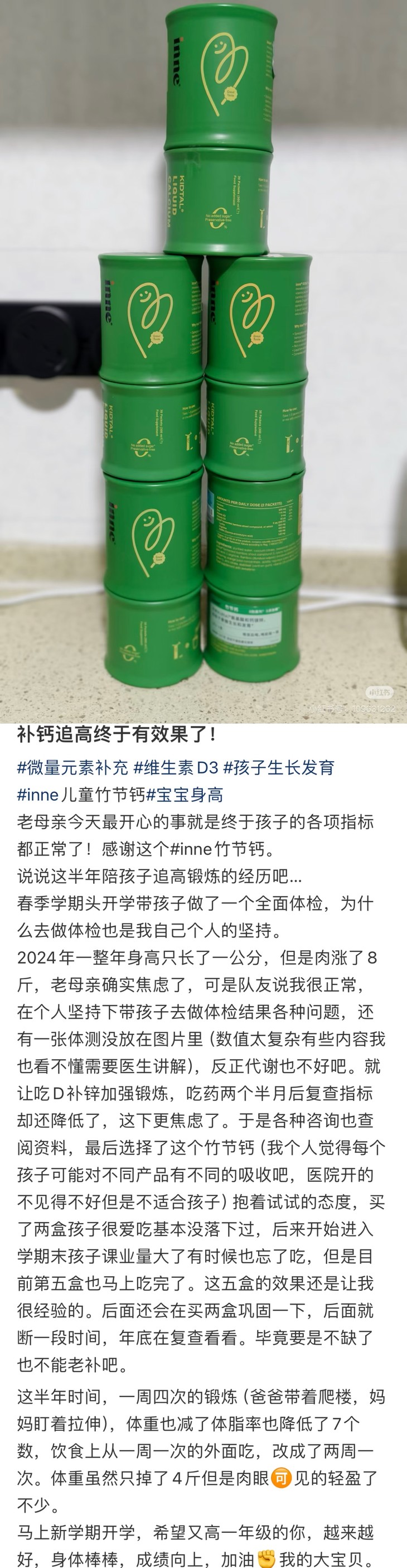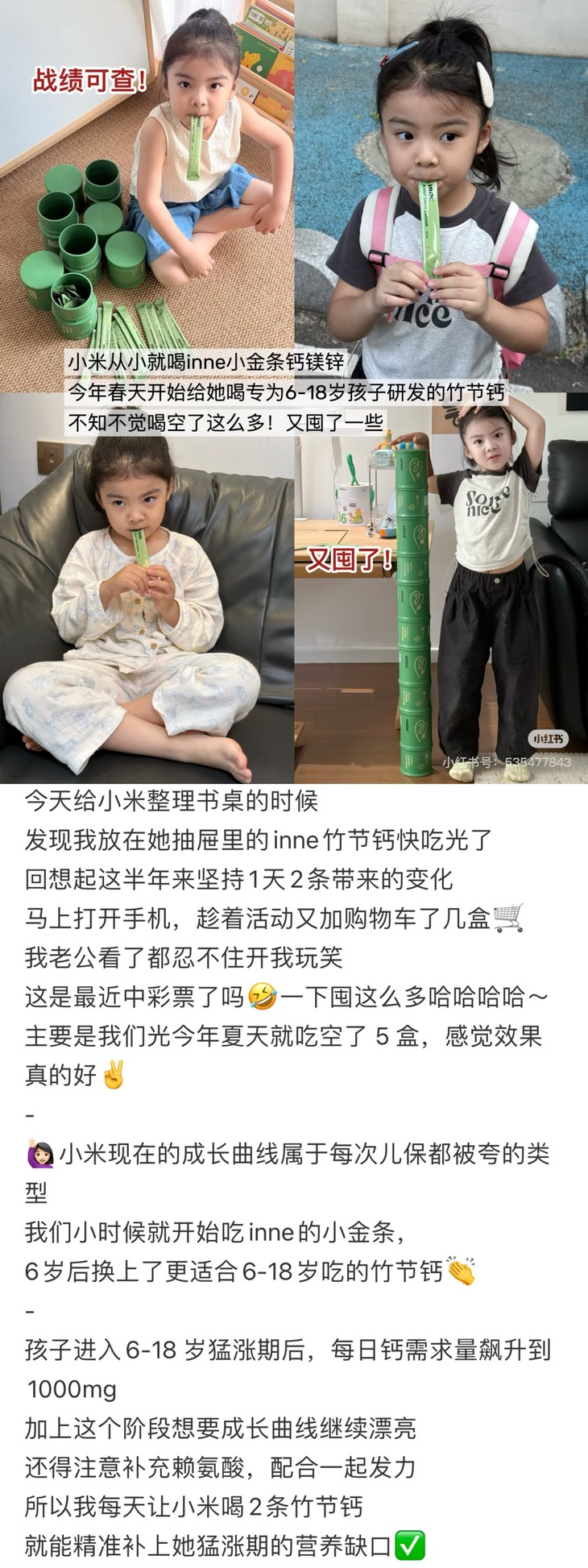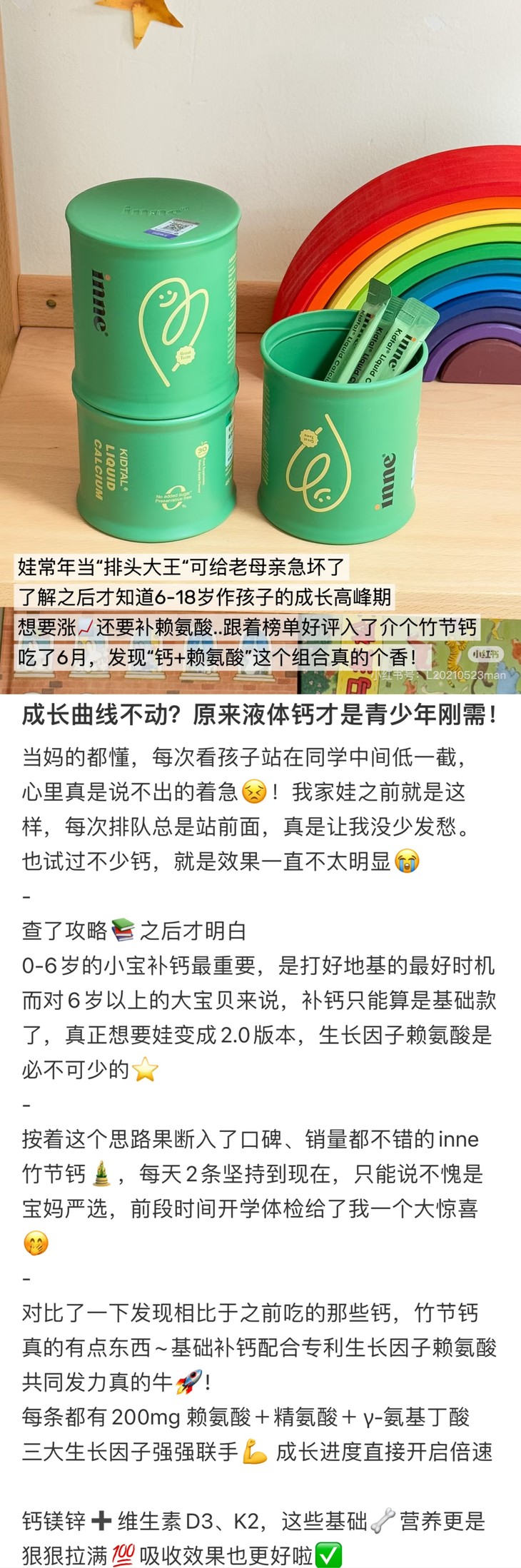 [屁侠推荐]inne竹节钙苹果味青少年钙儿童生长钙镁锌补钙赖氨酸钙 商品图4