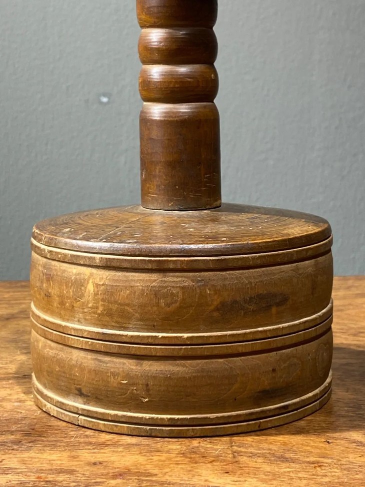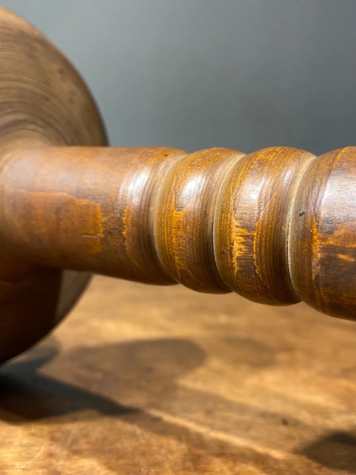 这是一件民国时期的黄楊木雕蜡烛台,以及同时期的一件黄楊木雕阅读或观赏画卷时的书挡棍,两者皆取材高贵的黄楊木以整木雕琢并以榫卯结构工艺制作而成,是民国时期的经典实用器具。