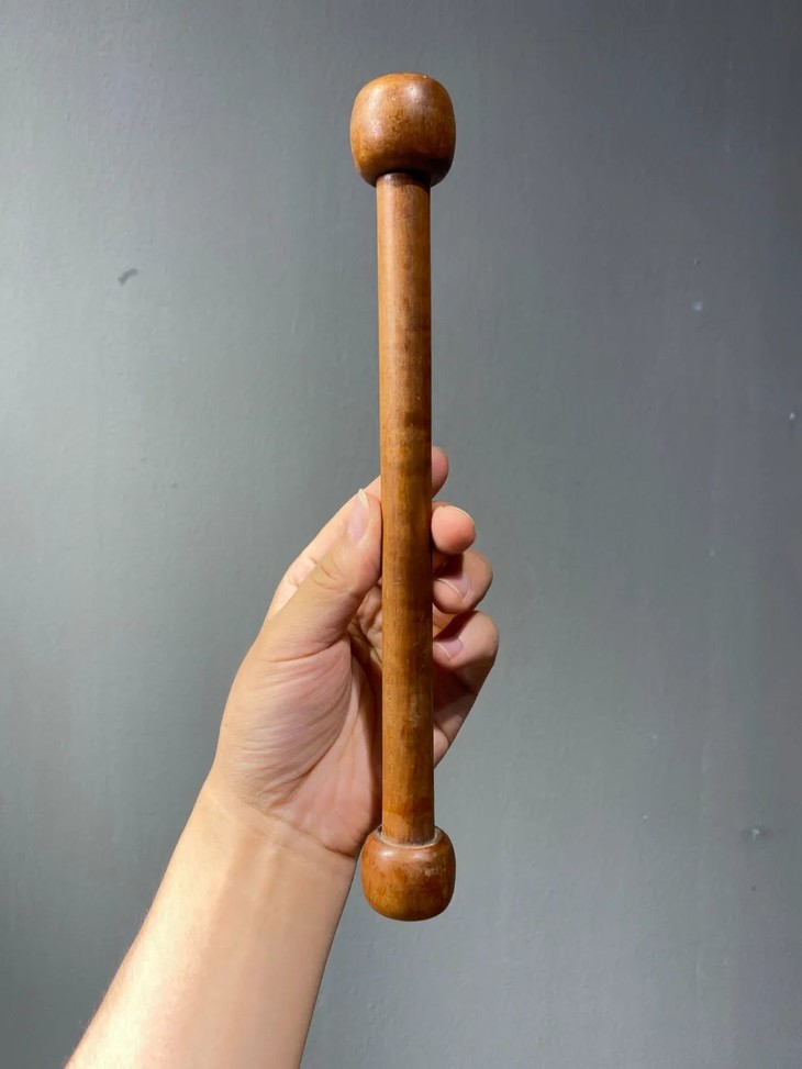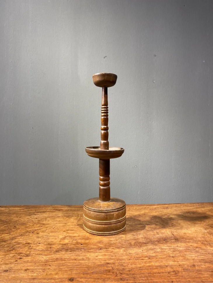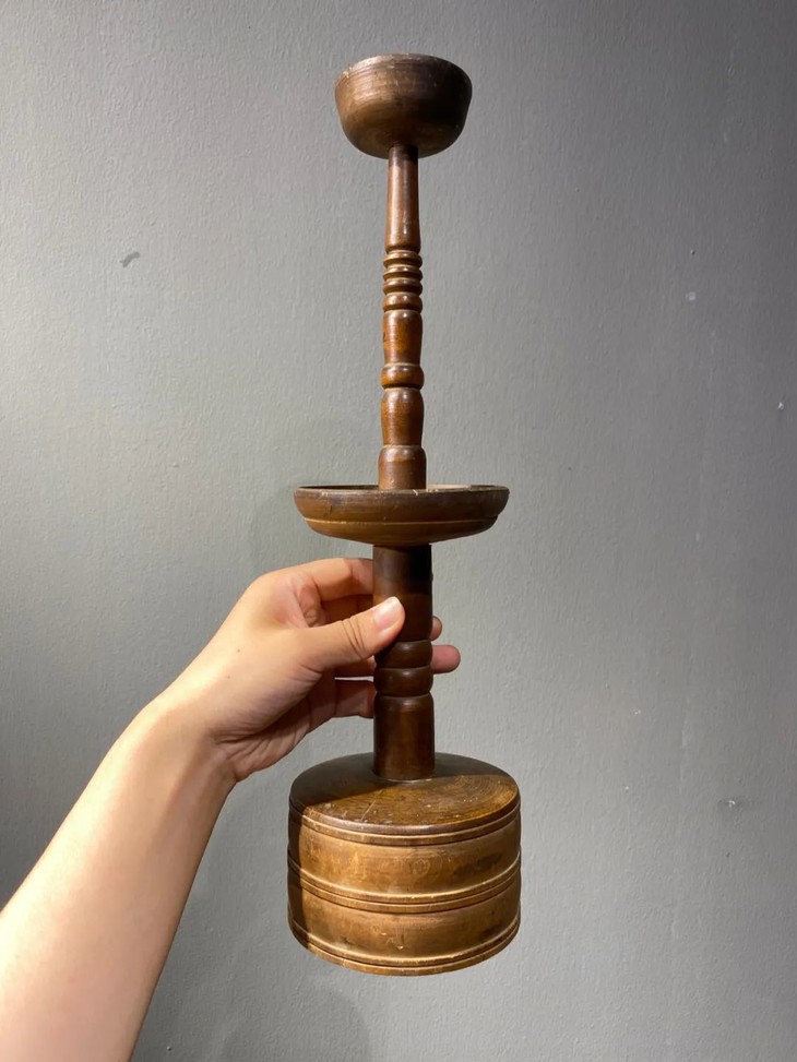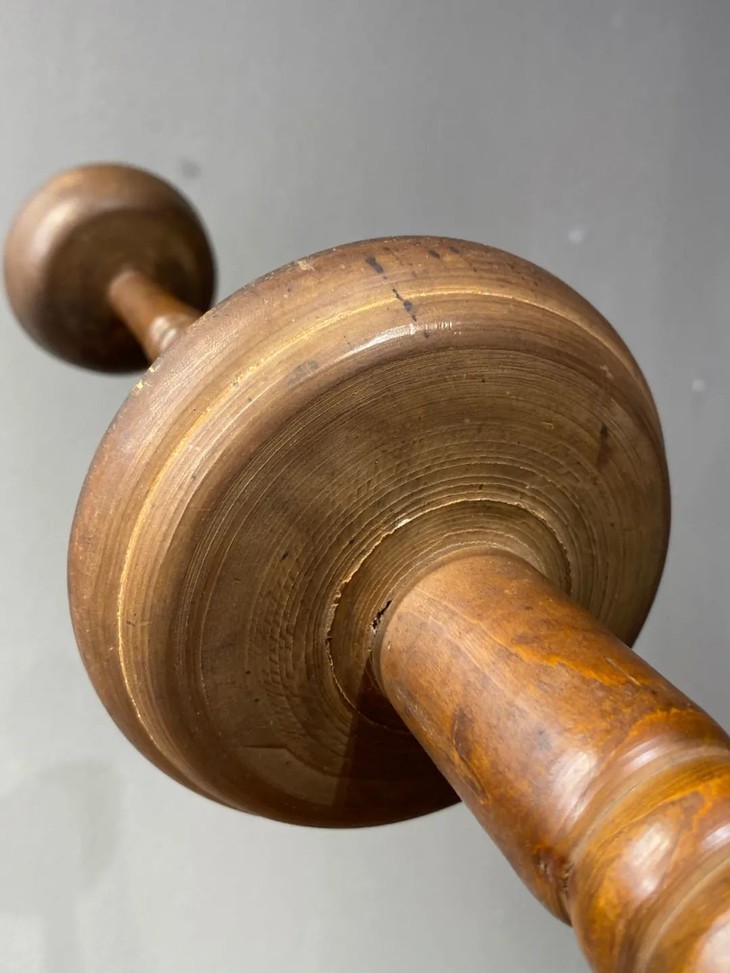 尺寸:蜡烛台:木烛台:高度:40.5厘米;最大直径:11.5厘米;重量:468.1克;书挡棍:长:25.3厘米;两端直径:2.92-3.2厘米;棍直径:1.6厘米;重量:65.8克