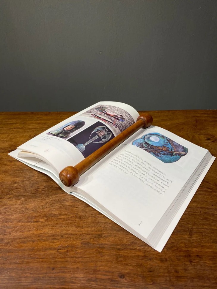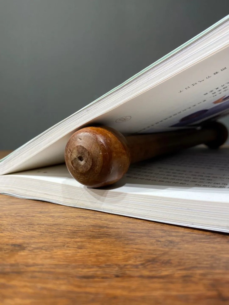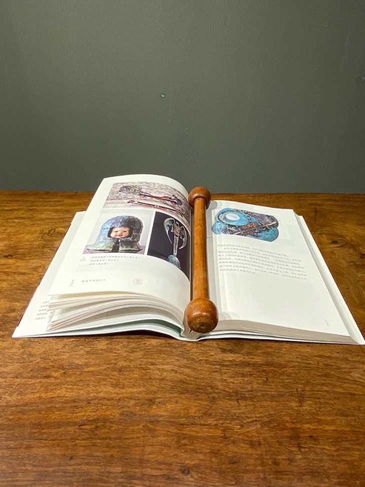 此组旧时代黄楊木蜡烛台与书挡棍取材高贵之黄楊木,质地坚硬比重与润泽度高,琢磨细腻,两者皆具简约大气的造型,整体设计精巧实用,全然以手工细细琢磨出来的线条,实用器具却如此讲究,令人耳目一新,应是民国初年之高端实用美器,如今仍然是老少皆宜的阅读佳器与家居摆设品。