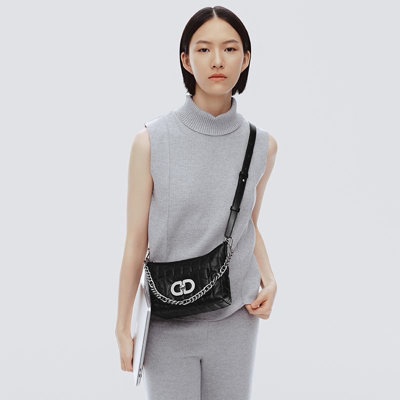 【2F】DISSONA迪桑娜DOUBLED-车花系列,牛皮单肩斜挎二用包包