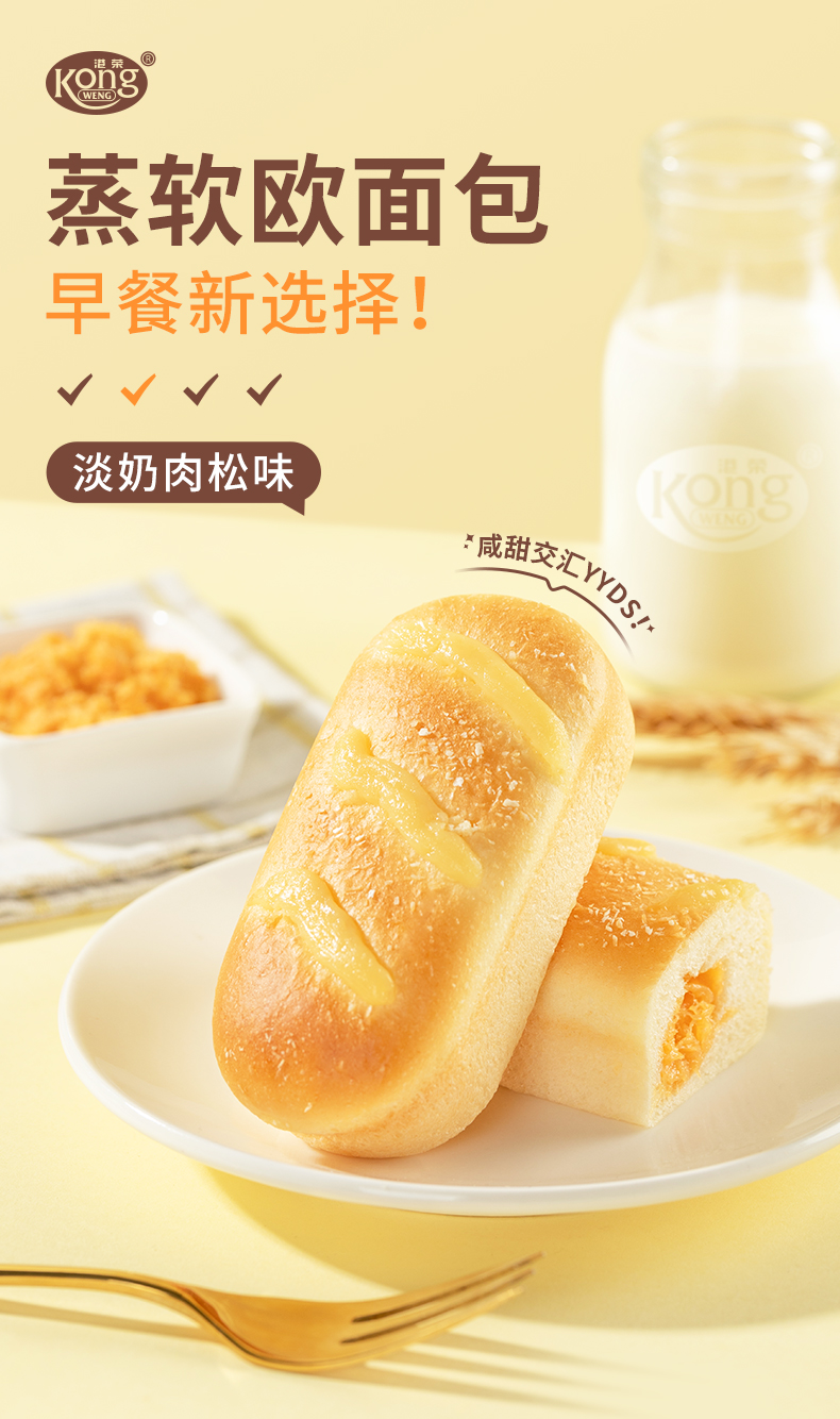 【买一送一】港荣淡奶肉松 蒸软欧包 肉松夹心 咸香口感 微焦皮薄 柔软细腻 店铺