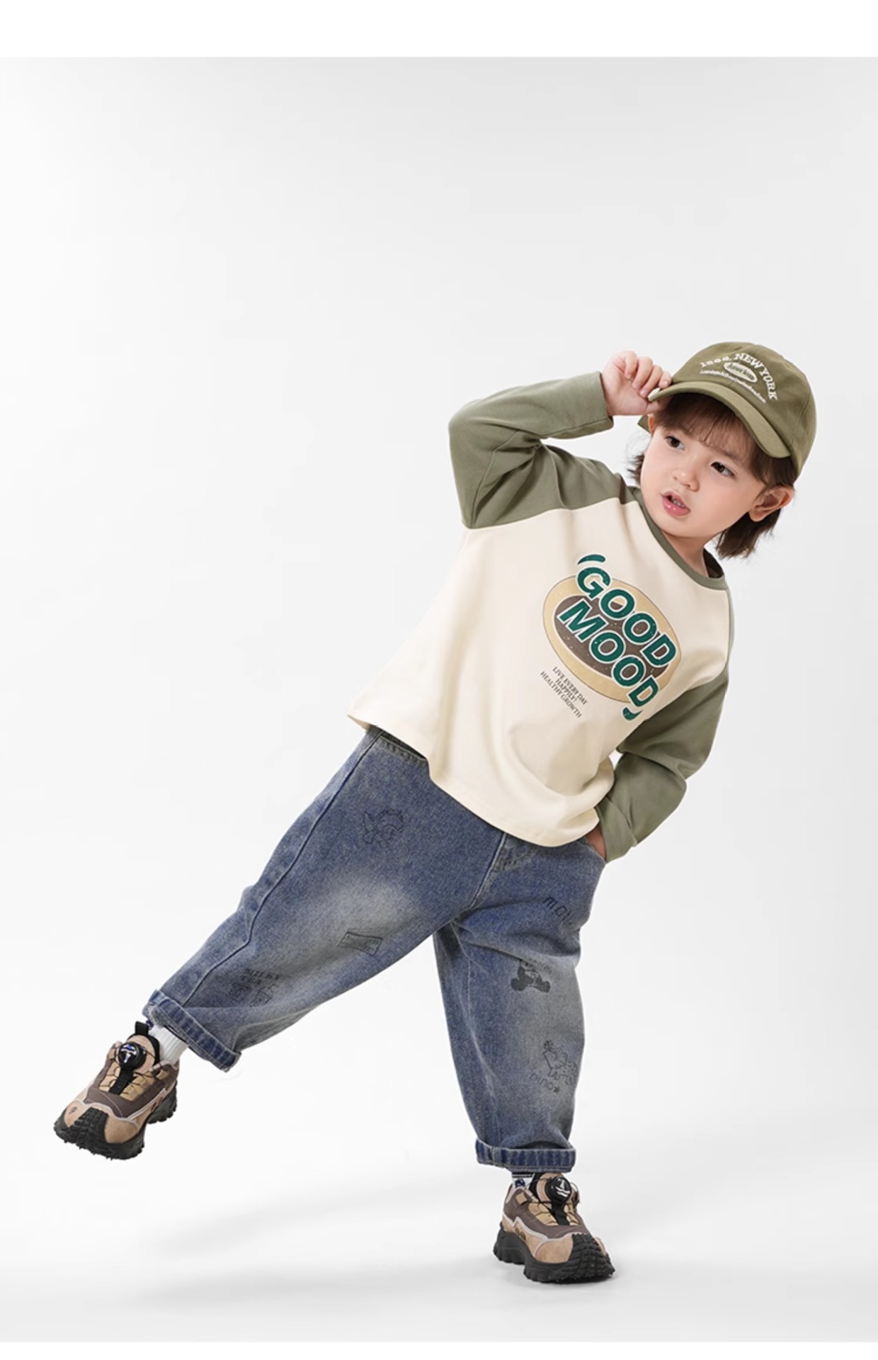 【29.9到手❗️7A抗菌软糯长袖】舒适亲肤软乎乎,多色好搭,怎么穿都有型!AINI儿童印花T恤插肩韩版春秋童装宝宝圆领打底衫