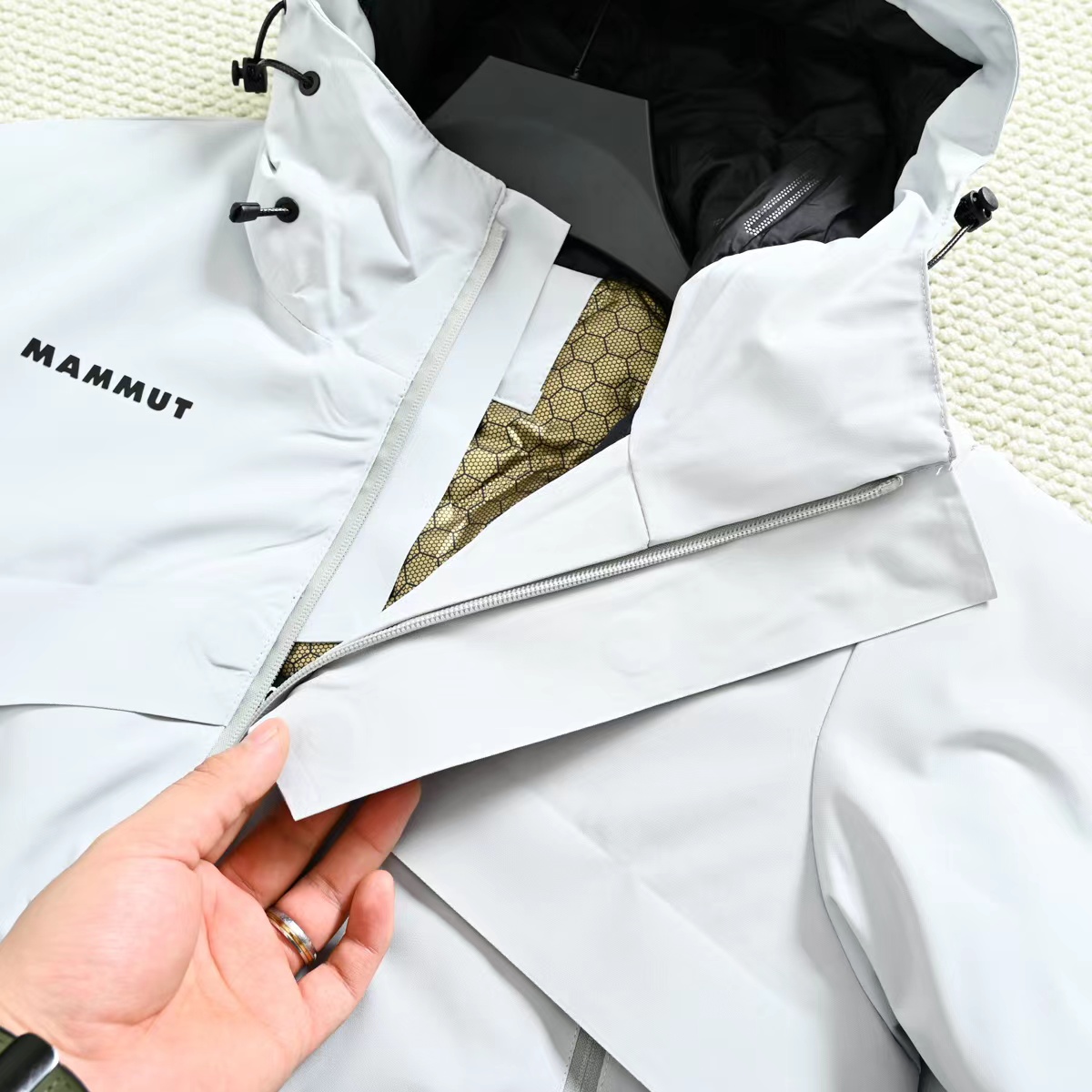 功能性面料?防水?透气?耐磨?保暖?拉链定制挡水条,胸前磁铁扣,可预防突然降雨的寒冷,潮湿直下摆设计?可调节下摆绳防止冷风进入,立体剪裁 更合身舒适?连帽压胶固型5公分 立挺感足,可收紧保暖头盔兼容, 袖口松紧半马蹄+魔术贴 内收防风 内里棉绒蓬松度高,洁净优质p棉,行棉机洗不坨绒?,抗静电里布,无差别羽绒服,外层面料防风,内里索温?保暖效果聚佳,上身不臃肿