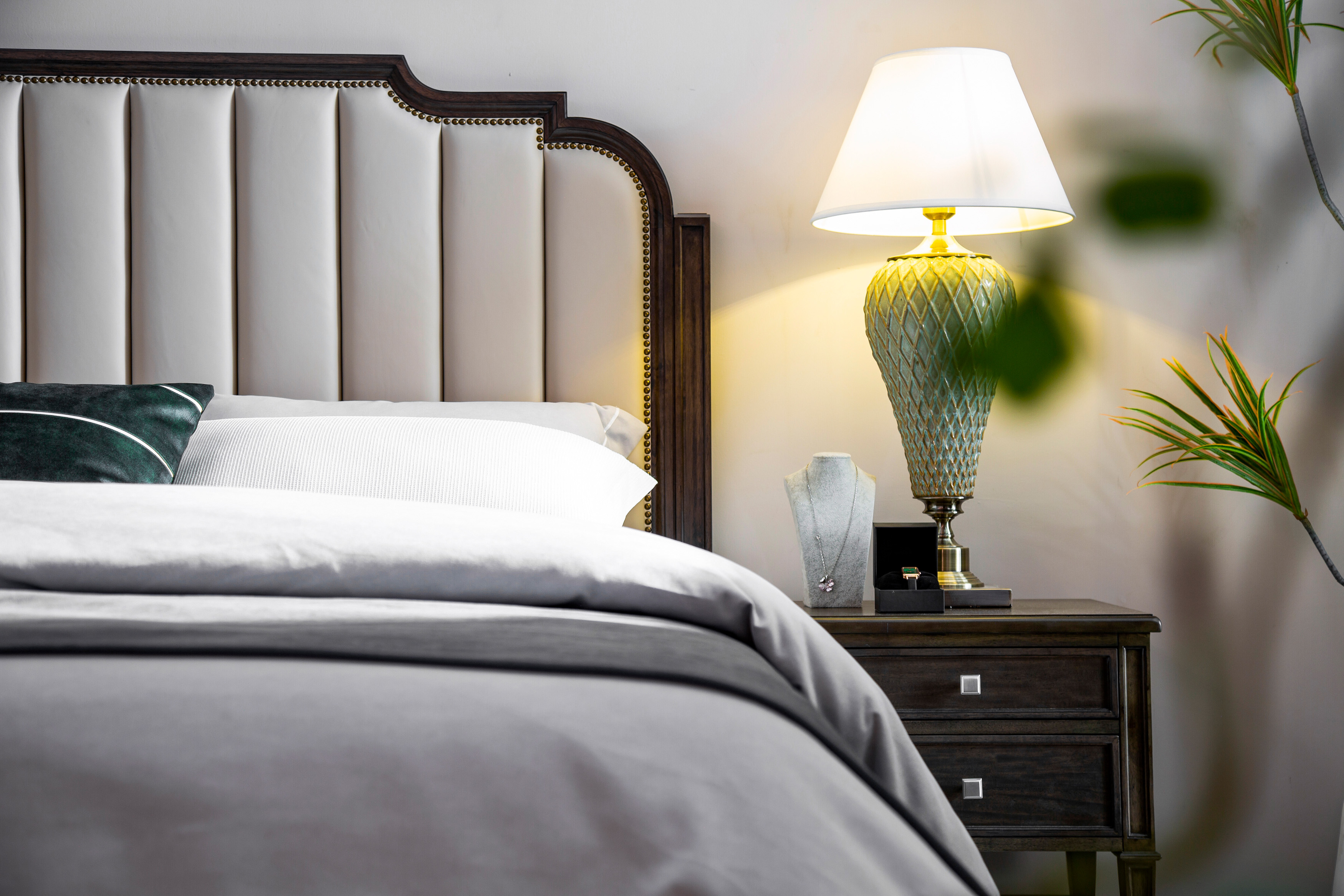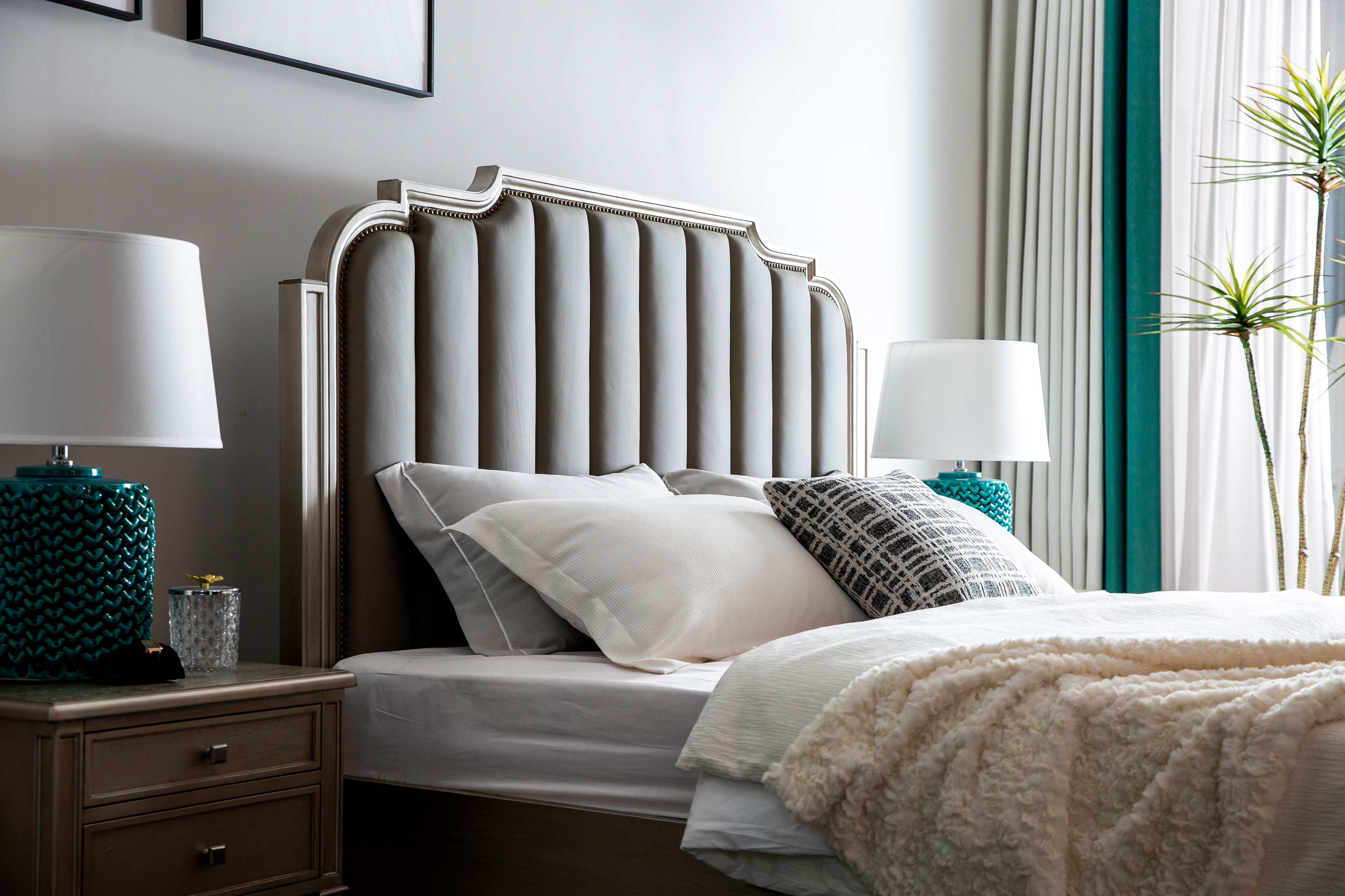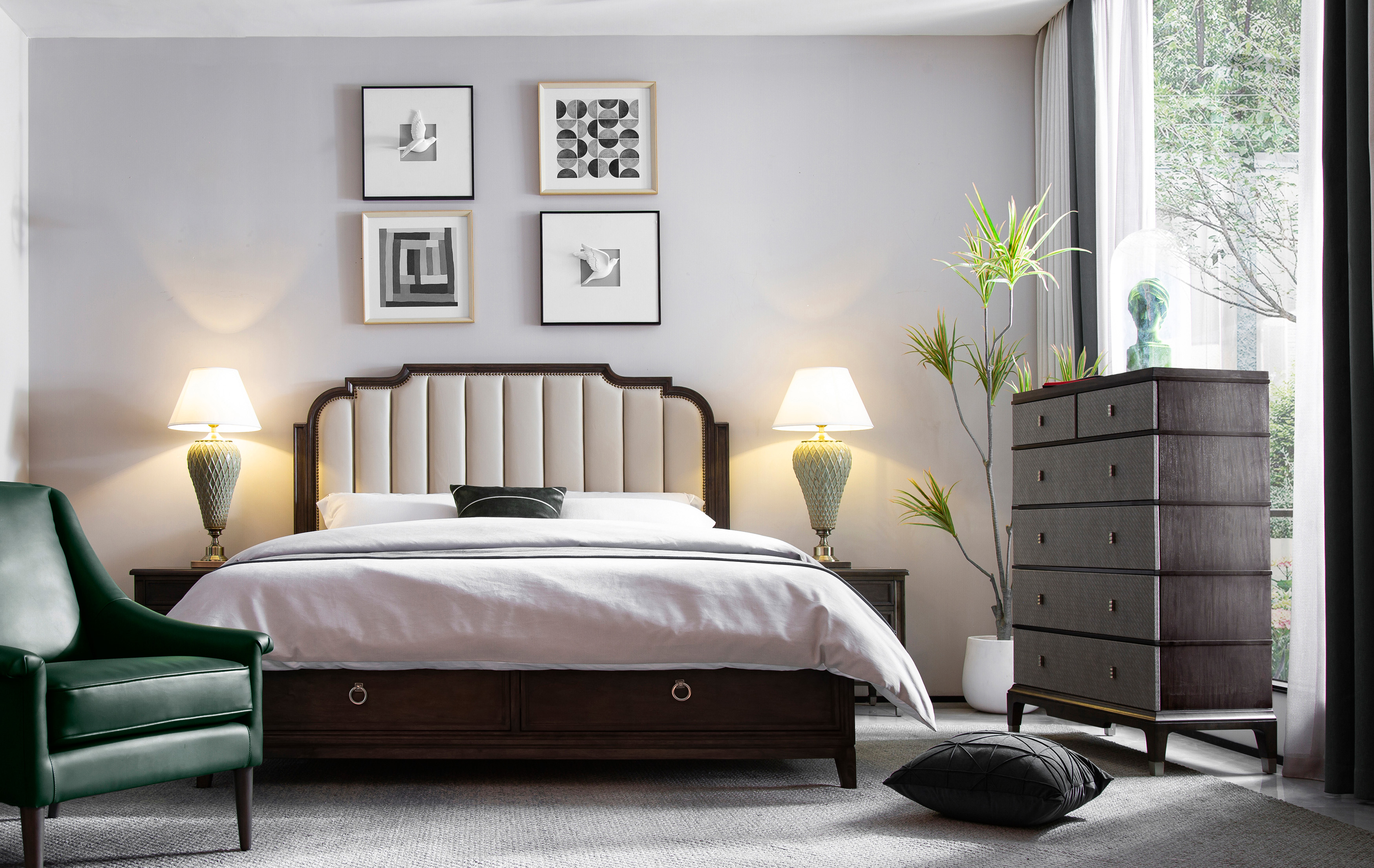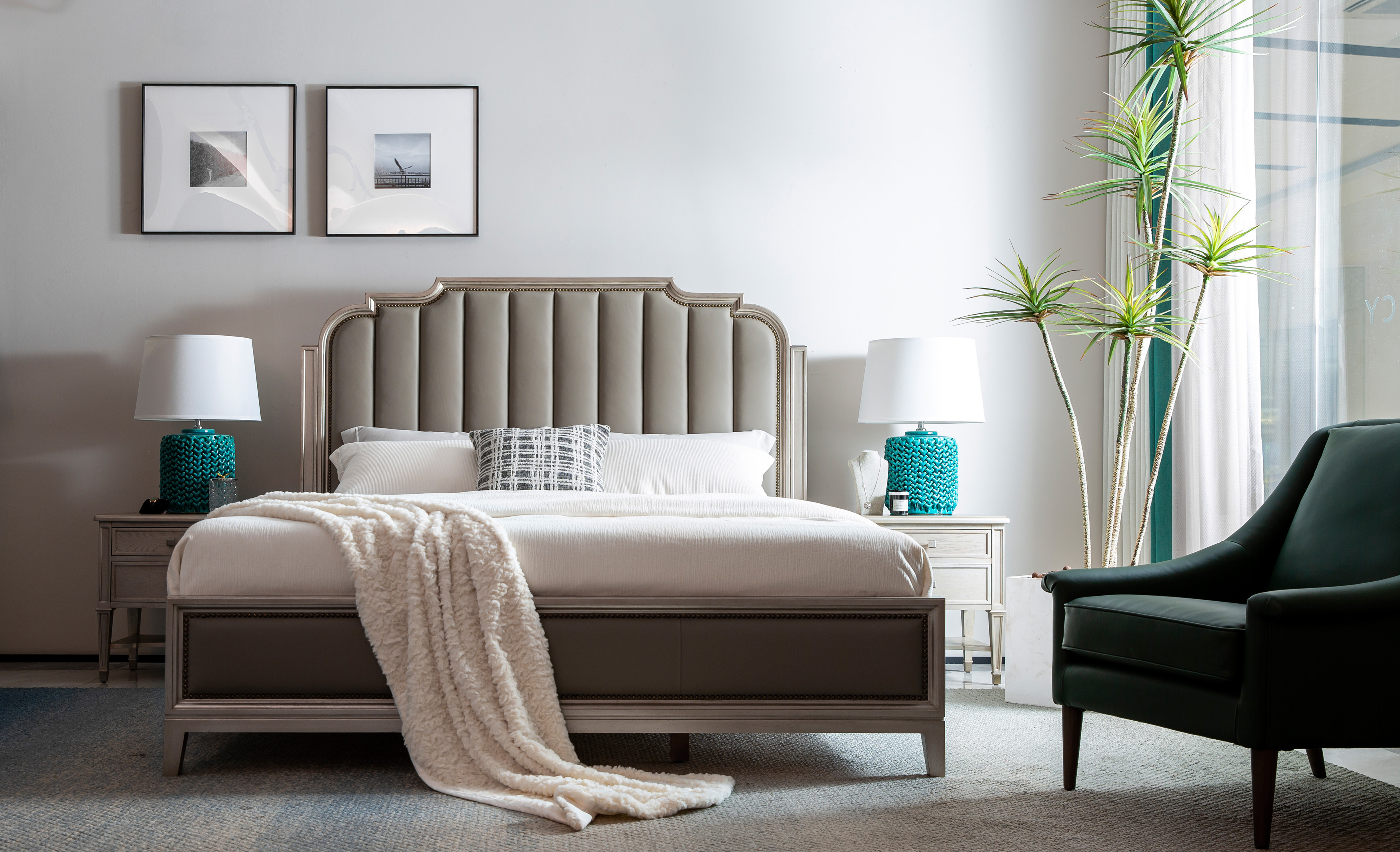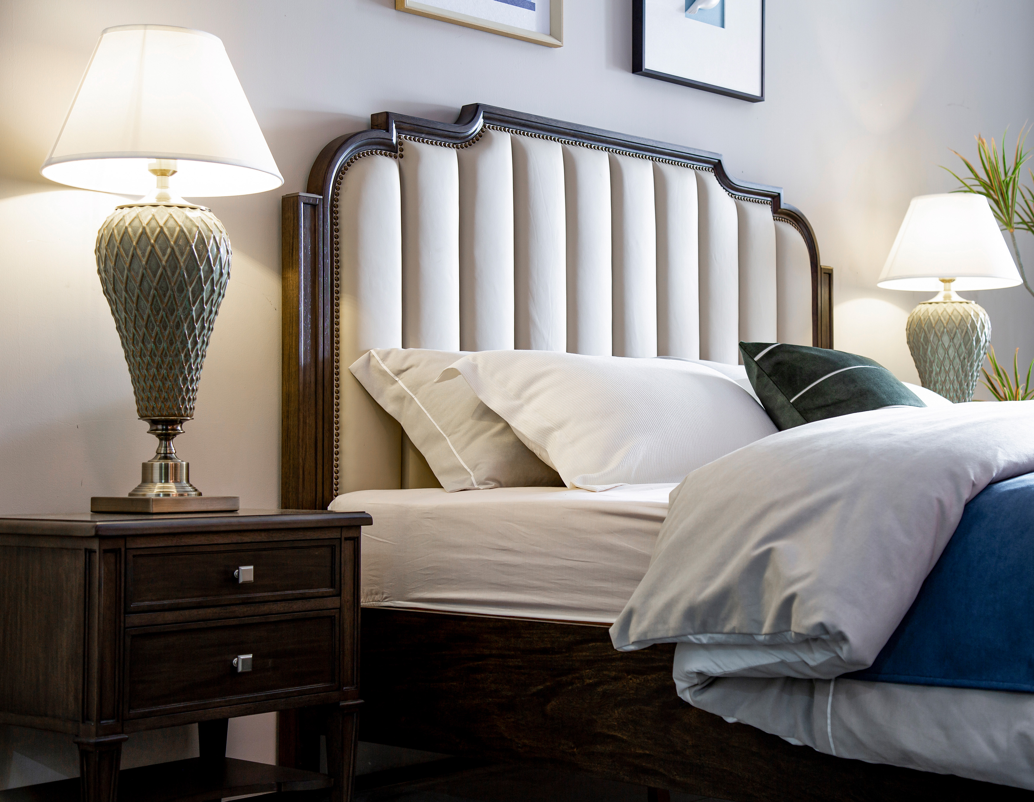 主材:实木+山纹OAK薄片/山纹艳阳花薄片+床头真皮
